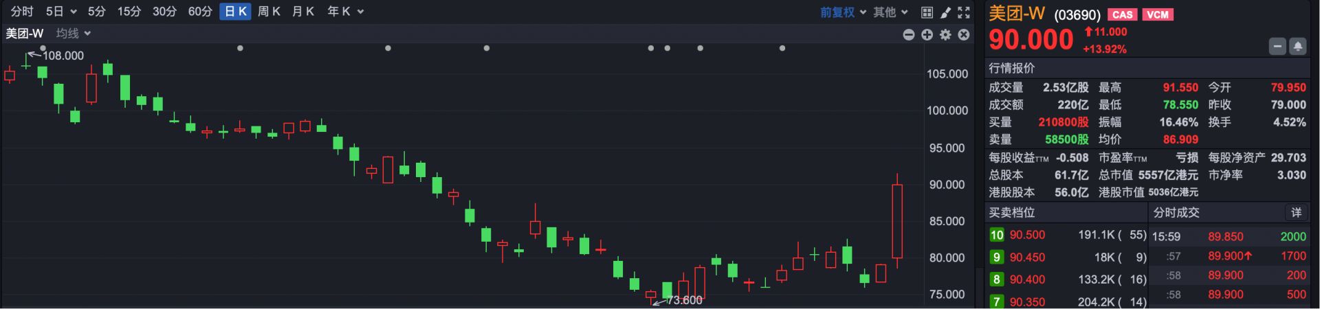 市场焦点方面,阿里巴巴-W(HK09988)、京东集团-SW(HK09618)、美团-W(HK03690)全线大涨。其中,阿里巴巴和京东集团均涨超4%,美团大涨超13%。