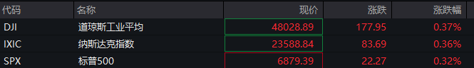 当地时间12月5日,美股三大指数小幅高开,截至发稿,道指涨0.37%,纳指涨0.36%,标普500指数涨0.32%。