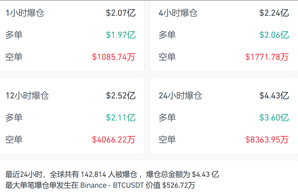加密货币方面全线重挫,截至23:25发稿,比特币大跌2.61%,跌破8.7万美元关口;以太币跌破3000美元,SOL、XRP、DOGE、BNB等全线下跌。过去24小时,爆仓人数高达14万人。