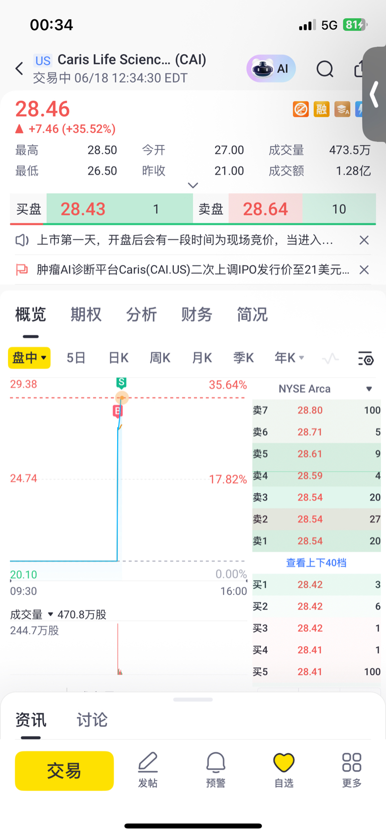 $Caris Life Sciences Inc(NASDAQ|CAI)$ 溜了溜了不够强势哦!