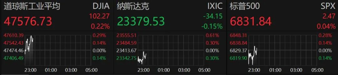 12月3日晚间,美股三大股指集体低开,开盘后道指拉升转为上涨。
