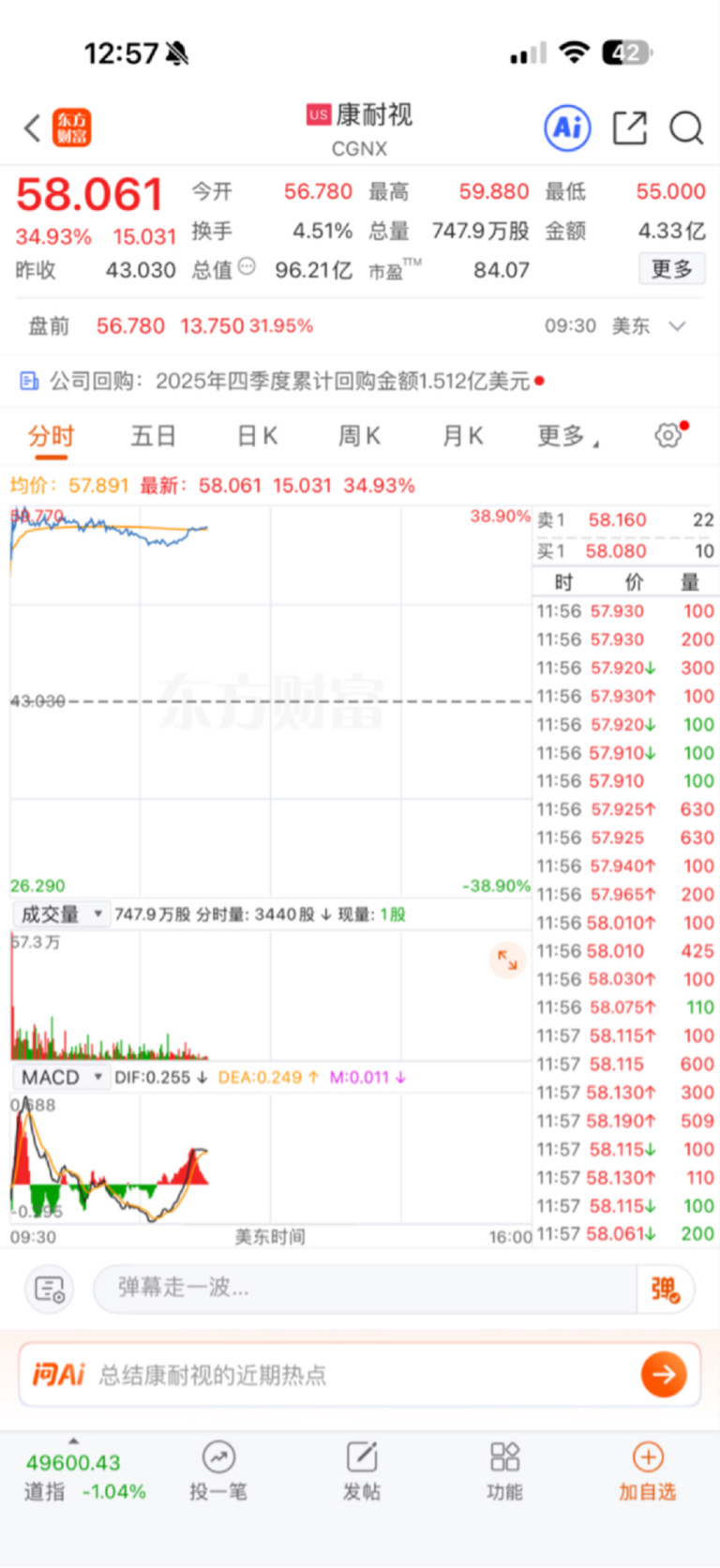 $康耐视(NASDAQ|CGNX)$ $C易思(SH688816)$ 美股机器视觉起飞了,恭喜今天敢于买入的