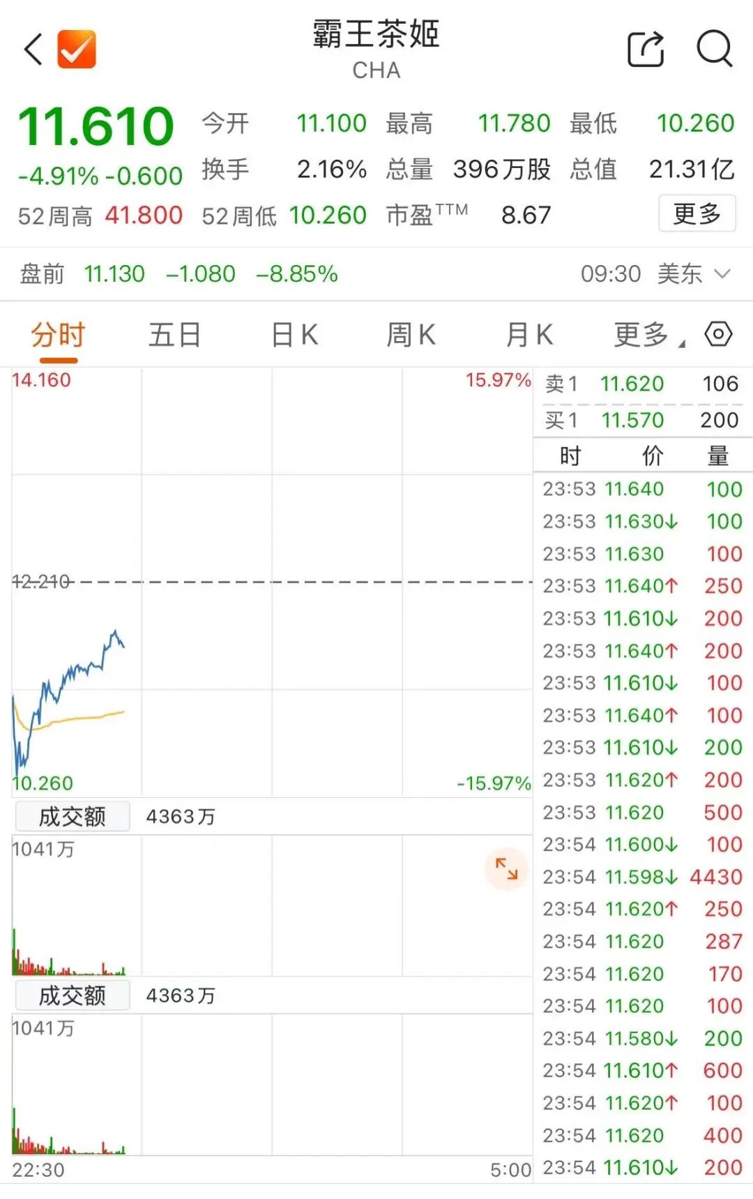 霸王茶姬美股大跌!深夜回应“咖啡因”问题