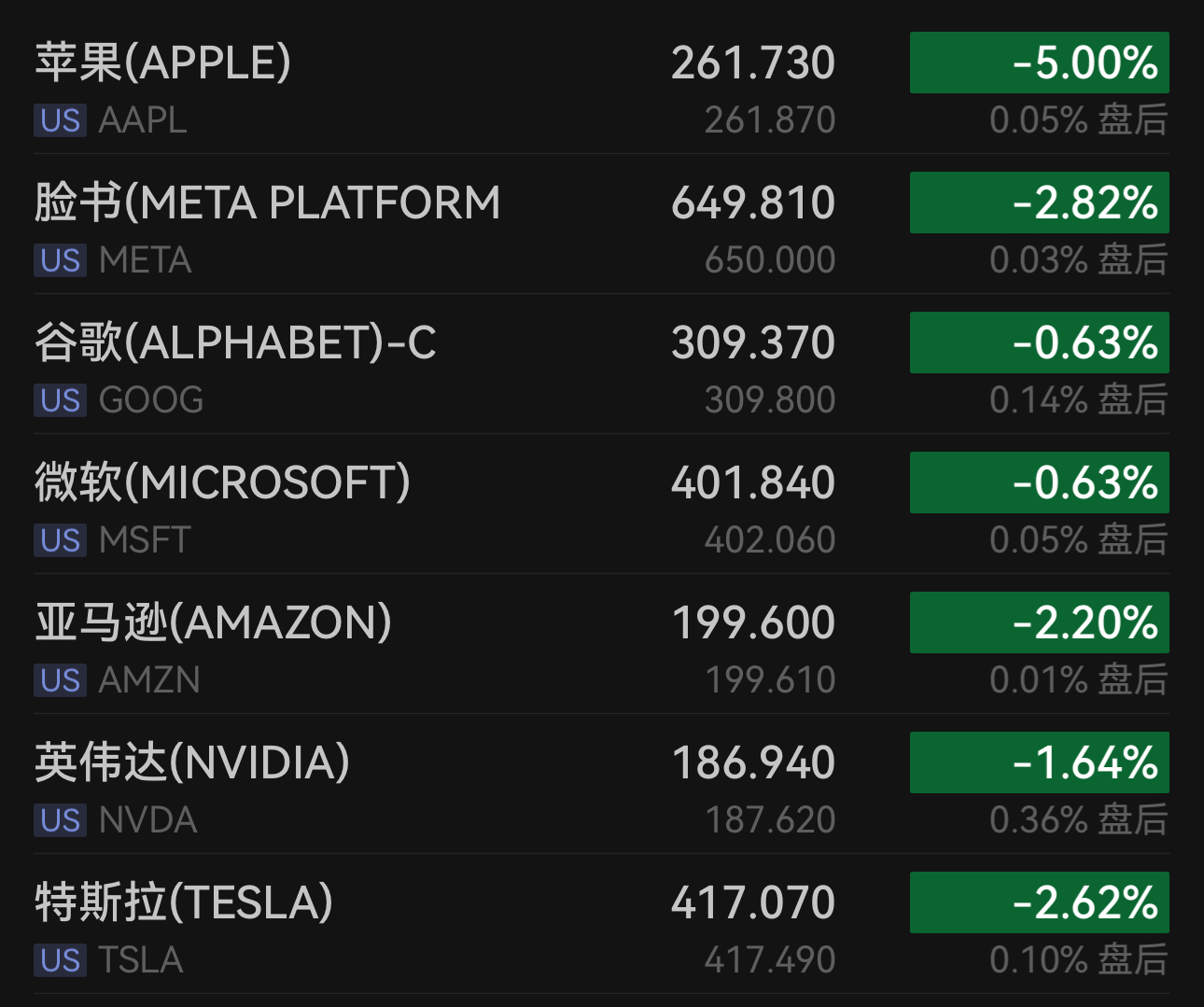 科技巨头悉数承压。苹果重挫5%,录得2025年4月以来的最大单日跌幅,此前美国联邦贸易委员会声称苹果新闻打压保守派内容。Meta Platforms下跌2.82%;亚马逊下跌2.20%;特斯拉下跌2.62%。英伟达下跌1.64%,微软下跌0.63%,谷歌C类股下跌0.63%。