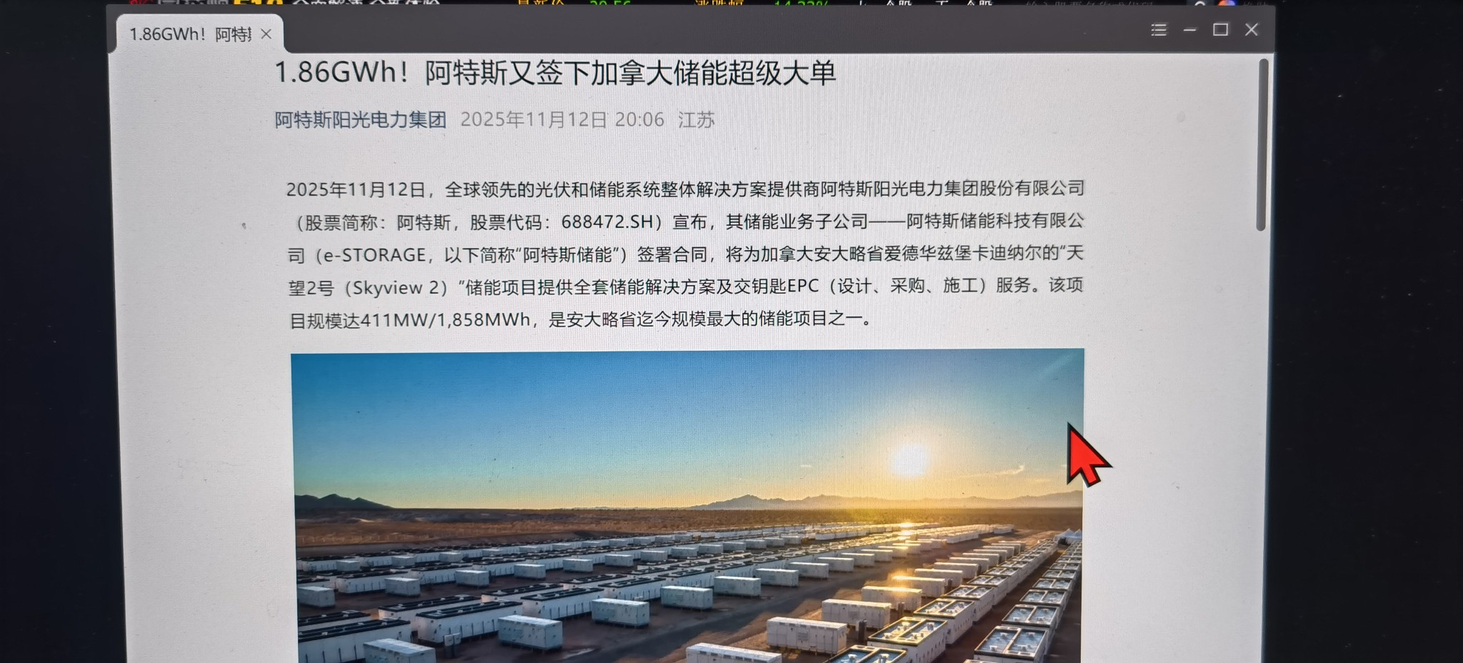 拿下加拿大1.86GW超级大单!帅的,明天反弹下吧。