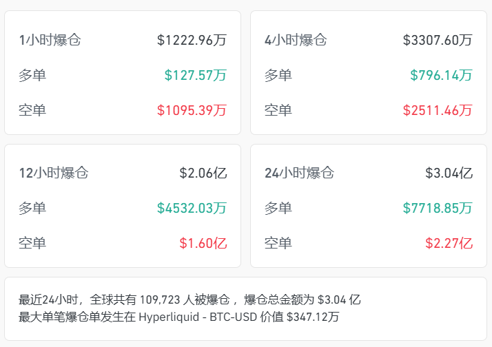 加密货币集体上涨,比特币重返90000美元上方。截至北京时间6:30,比特币涨3.68%,报90282美元/枚。过去24小时,加密货币全网超10万人被爆仓。