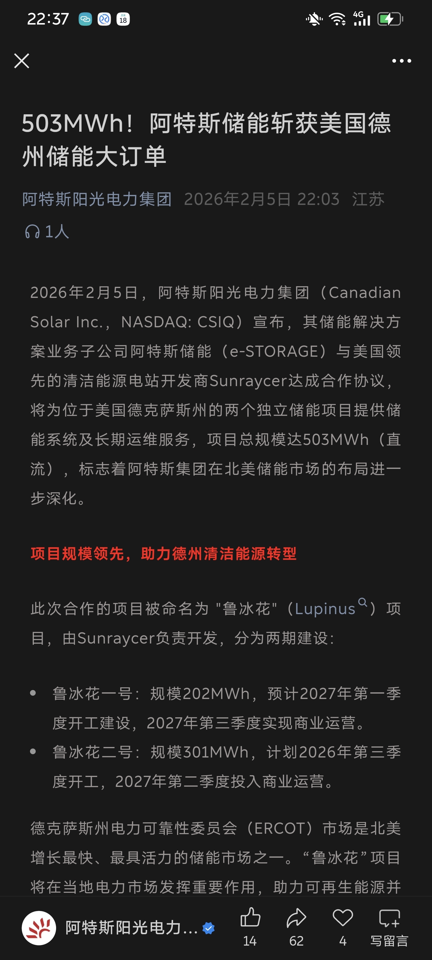 $阿特斯太阳能(NASDAQ|CSIQ)$ 今天又接了一个储能大单