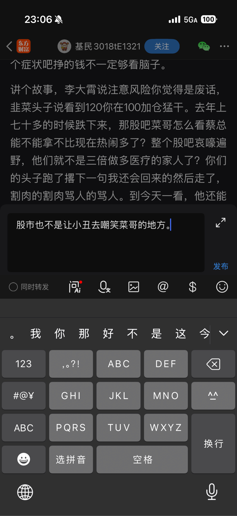 温馨提示: 1.根据《证券法》规定,禁止编造、传播虚假信息或者误导性信息,扰乱证券市场;2.用户在本社区发表的所有资料、言论等仅代表个人观点,与本网站立场无关,不对您构成任何投资建议。用户应基于自己的独立判断,自行决定证券投资并承担相应风险。《东方财富社区管理规定》