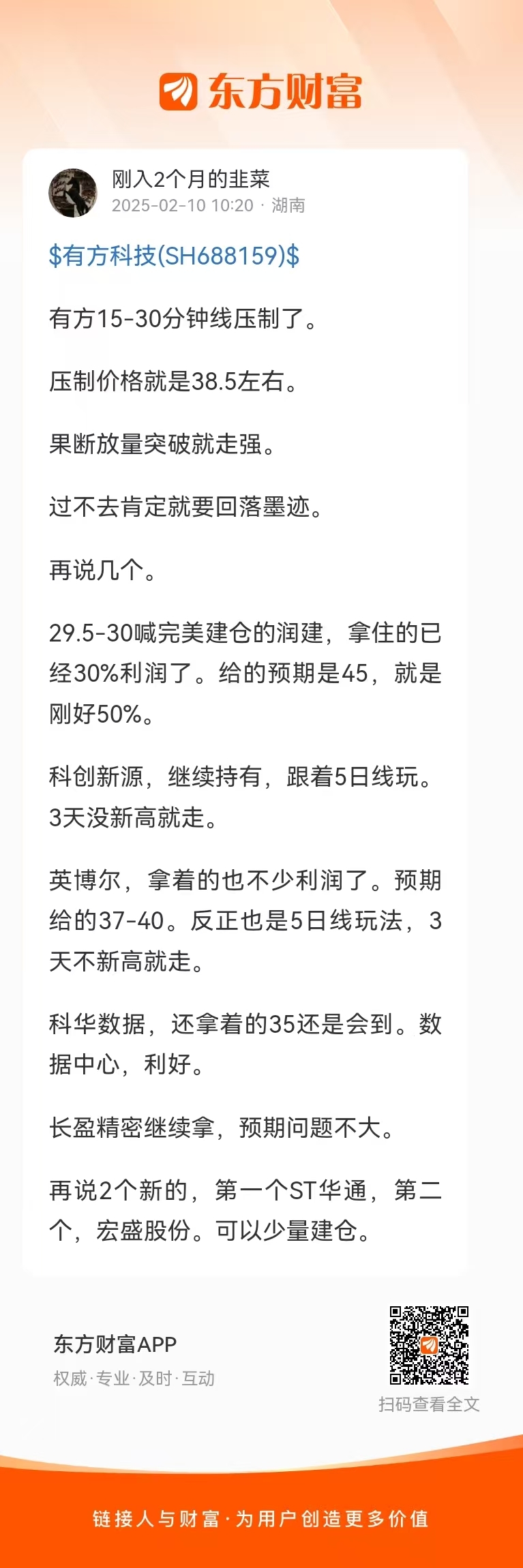温馨提示: 1.根据《证券法》规定,禁止编造、传播虚假信息或者误导性信息,扰乱证券市场;2.用户在本社区发表的所有资料、言论等仅代表个人观点,与本网站立场无关,不对您构成任何投资建议。用户应基于自己的独立判断,自行决定证券投资并承担相应风险。《东方财富社区管理规定》