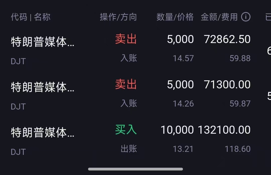 $特朗普媒体科技集团(NASDAQ|DJT)$ 昨晚买特朗普,挣了1.3万刀。也太容易了吧?#复盘记录#