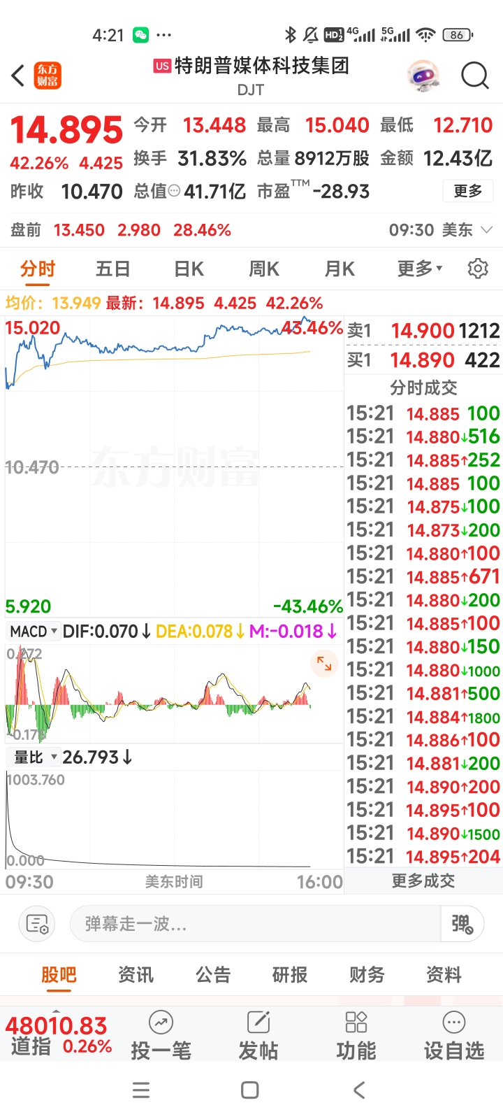$特朗普媒体科技集团(NASDAQ|DJT)$ 霸姐发来贺电!