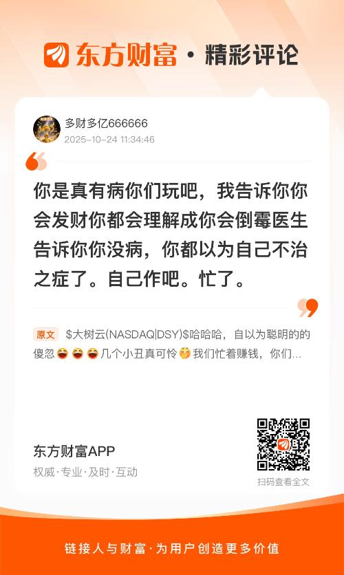 温馨提示: 1.根据《证券法》规定,禁止编造、传播虚假信息或者误导性信息,扰乱证券市场;2.用户在本社区发表的所有资料、言论等仅代表个人观点,与本网站立场无关,不对您构成任何投资建议。用户应基于自己的独立判断,自行决定证券投资并承担相应风险。《东方财富社区管理规定》