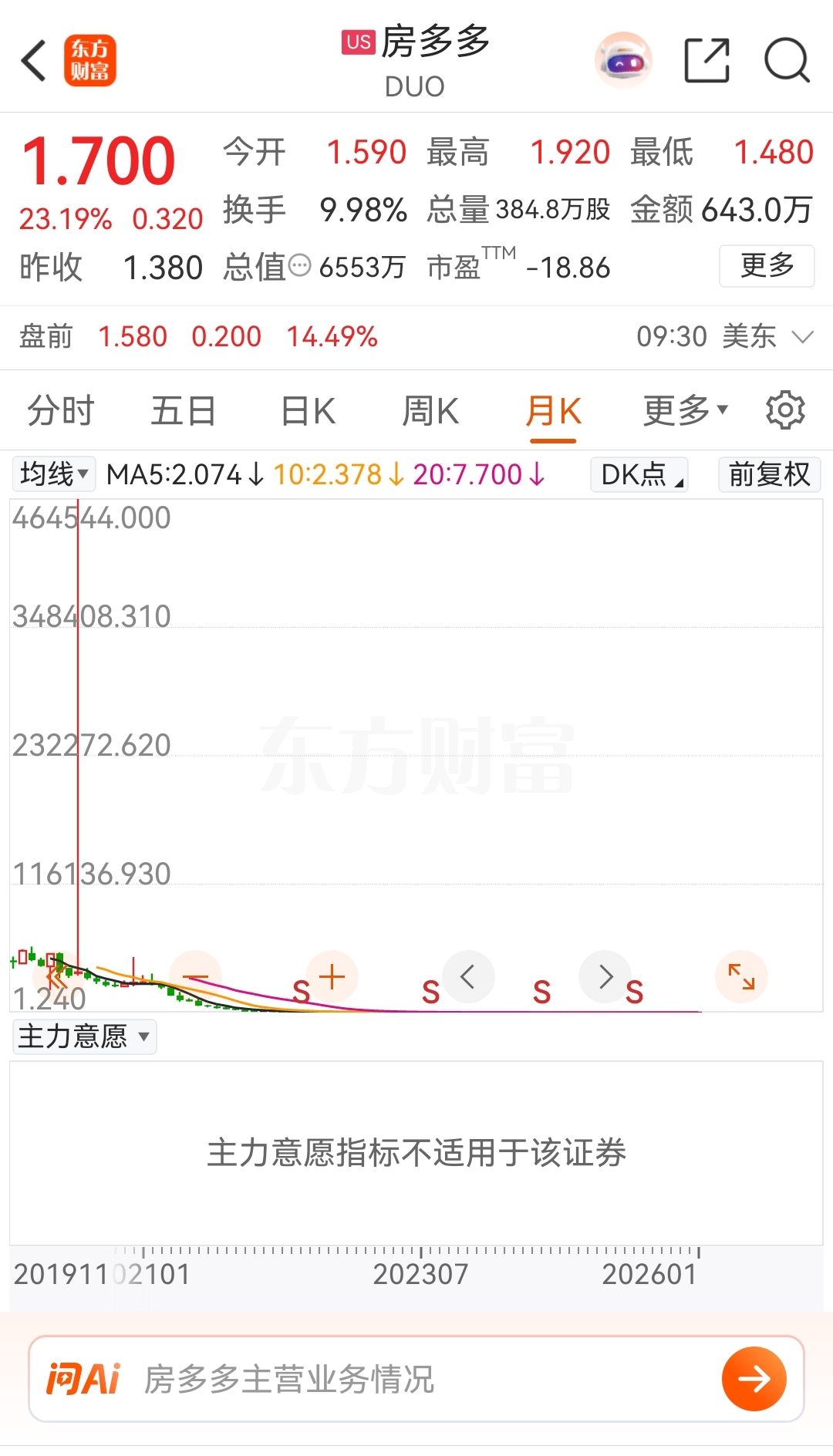 $房多多(NASDAQ|DUO)$ 意思这个以前股价那么高??闻所闻未。