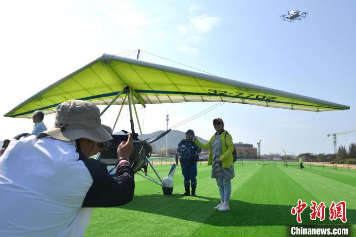 仪式现场,除EH216-S无人驾驶载人航空器外,还展示了动力三角翼、动力伞、表演无人机等机型,吸引市民游客围观。北京游客石学研说,飞上天空是许多人梦寐以求的新奇体验,期待有更多低空旅游项目推出。