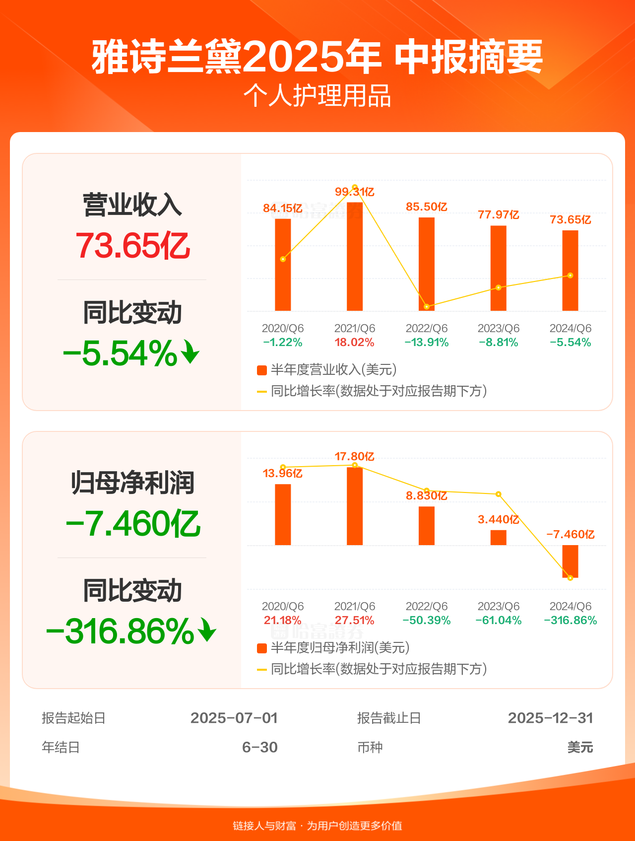 【图解财报】雅诗兰黛中报盈利2.09亿美元,上年同期亏损7.46亿美元