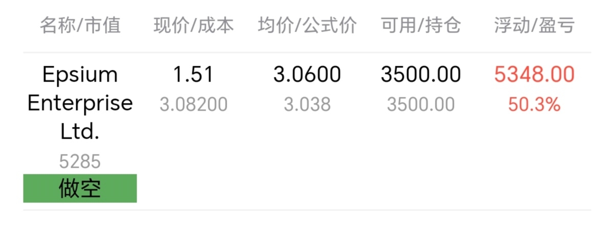 $Epsium Enterprise Ltd-A(NASDAQ|EPSM)$ 老早我就发了做空还来得及,有人看到没?