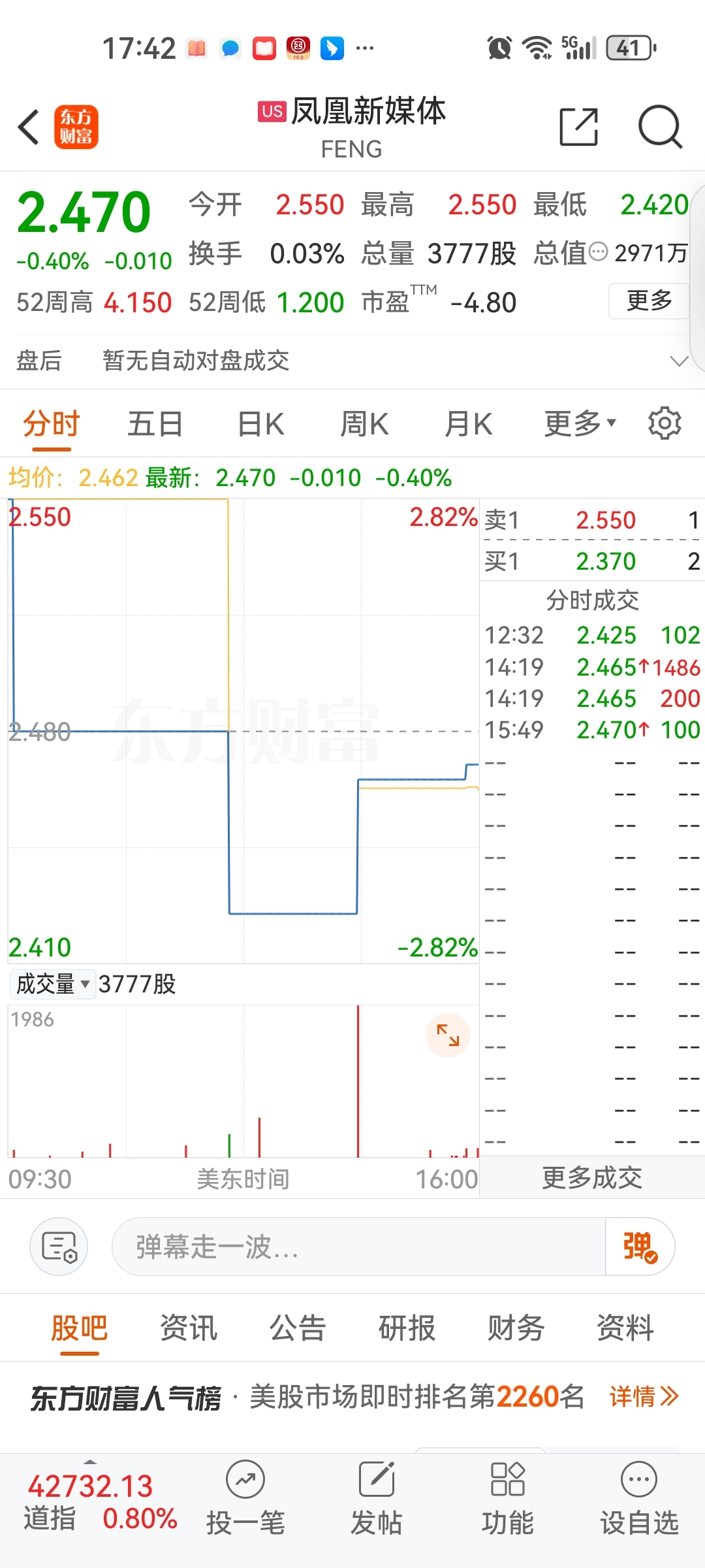 $凤凰新媒体(NYSE|FENG)$ 1月3日,没人买!