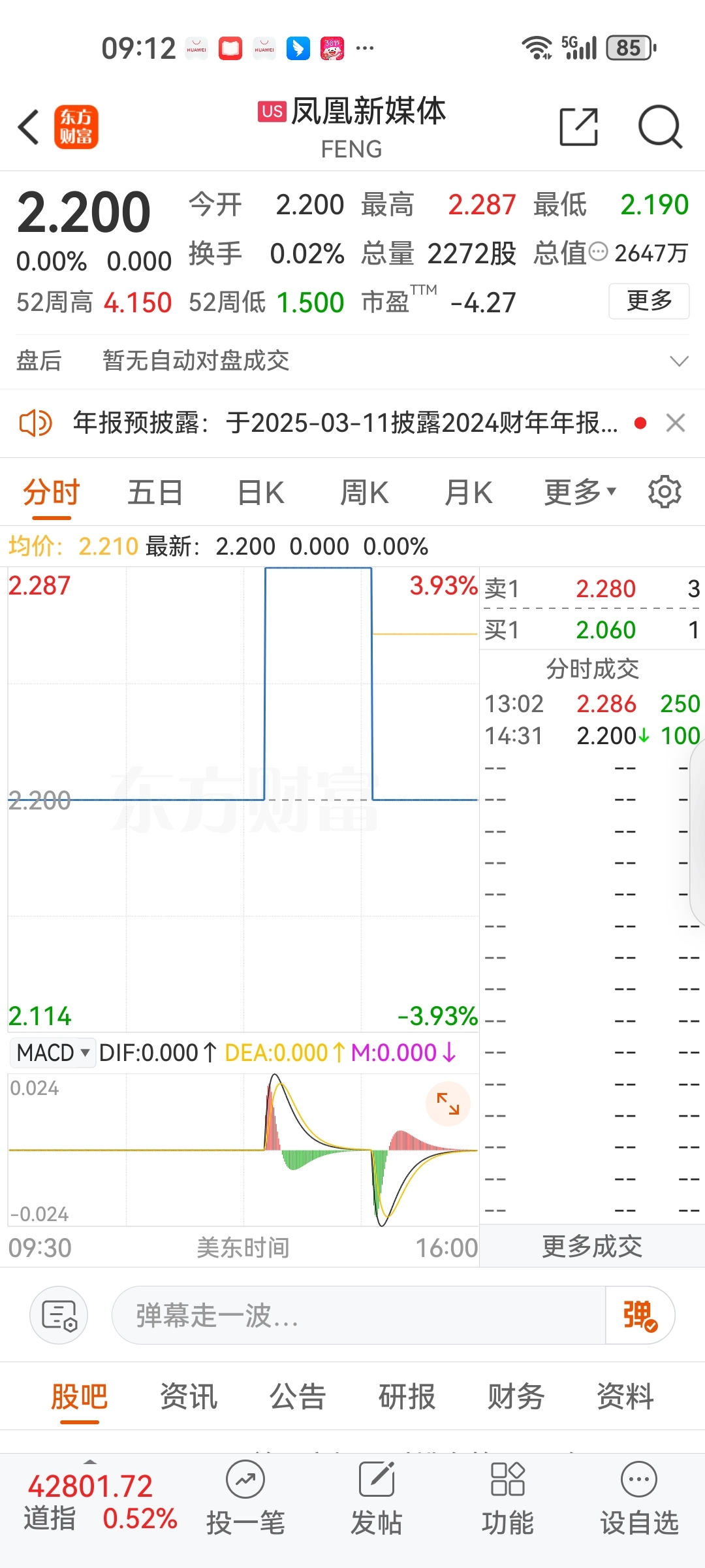 $凤凰新媒体(NYSE|FENG)$ 3月7日,垃圾没人买!一天都没人买!
