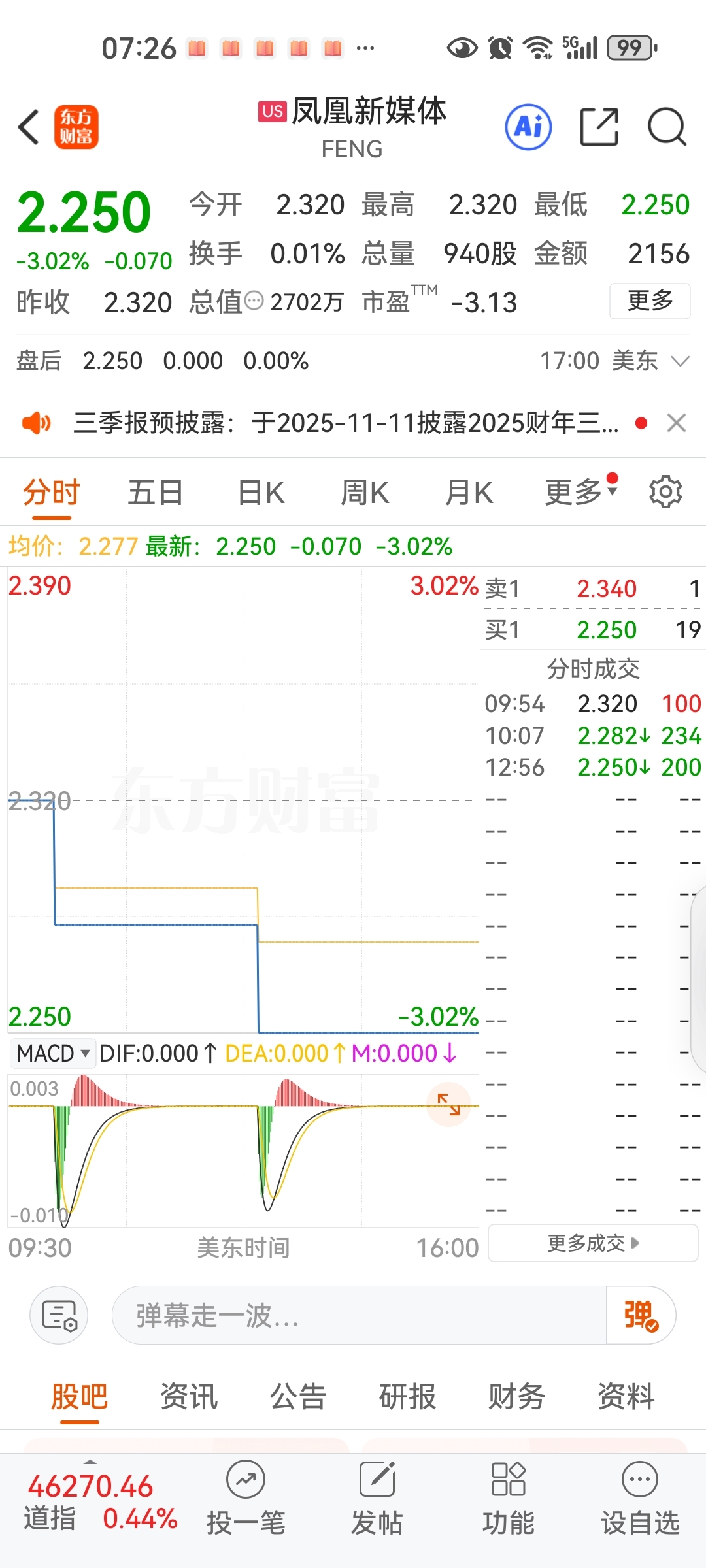 $凤凰新媒体(NYSE|FENG)$ 10月14日,总量940股,金额2156元,卖白菜啦!