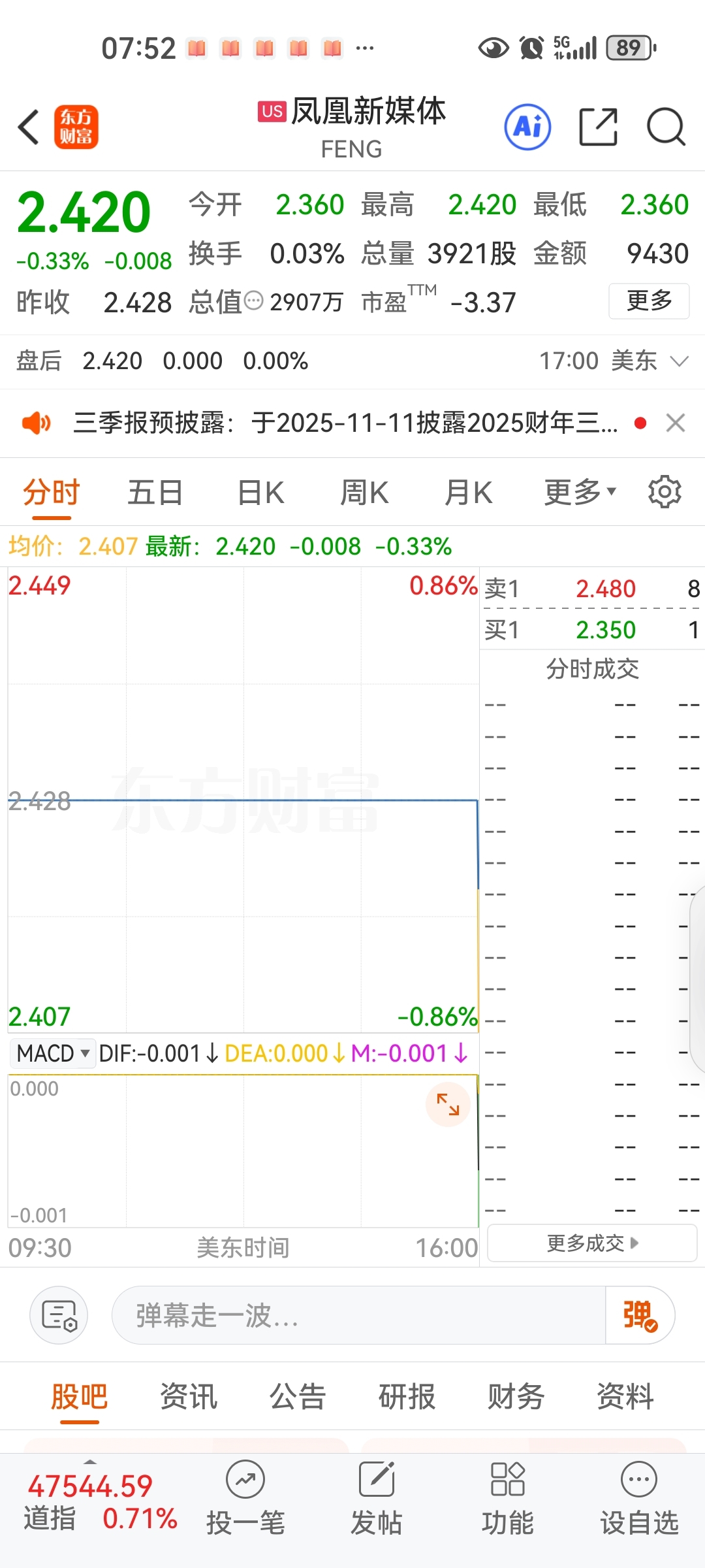 $凤凰新媒体(NYSE|FENG)$ 10月27日,分时成交为0!又是鸭蛋