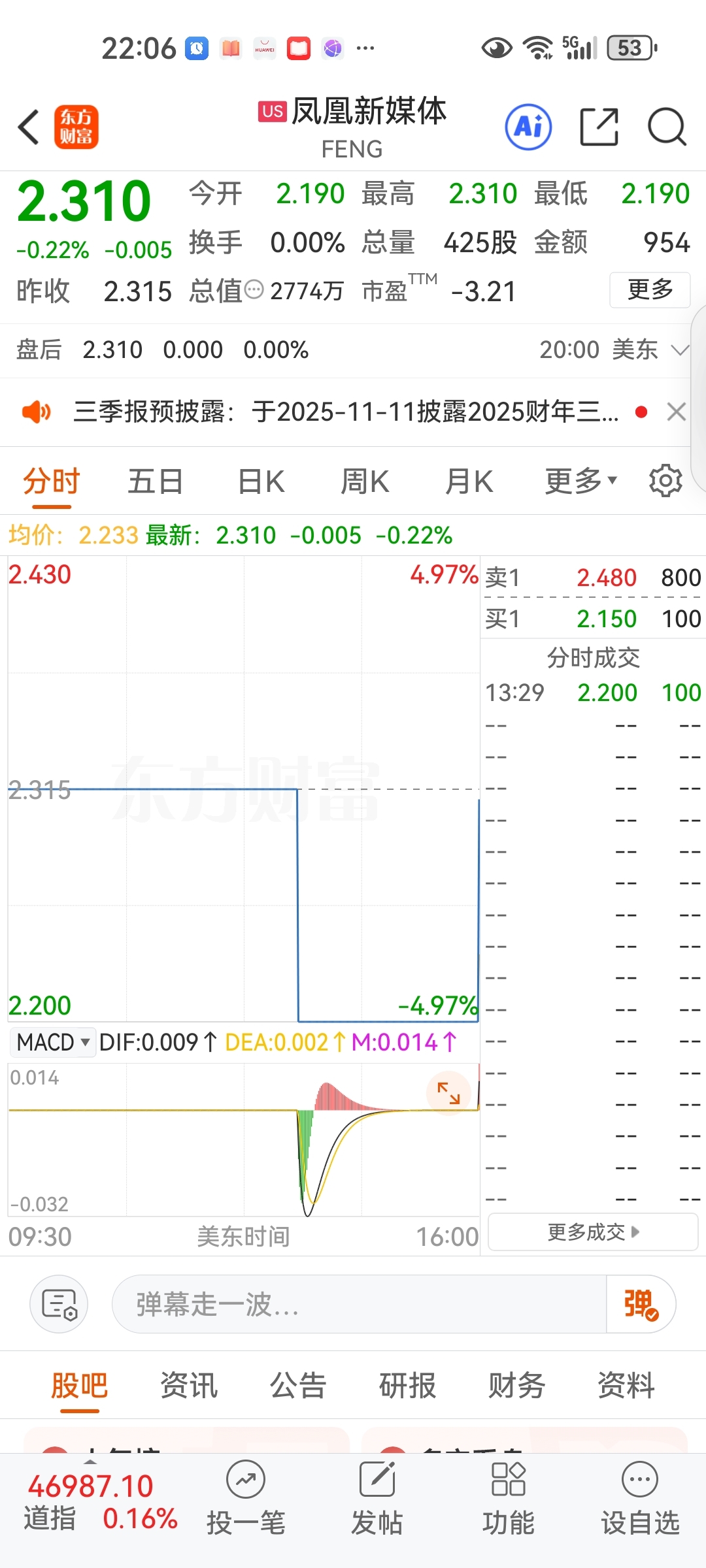 11月7日,分时成交100股,总量425股,金额954元,太差劲了!这是上市公司