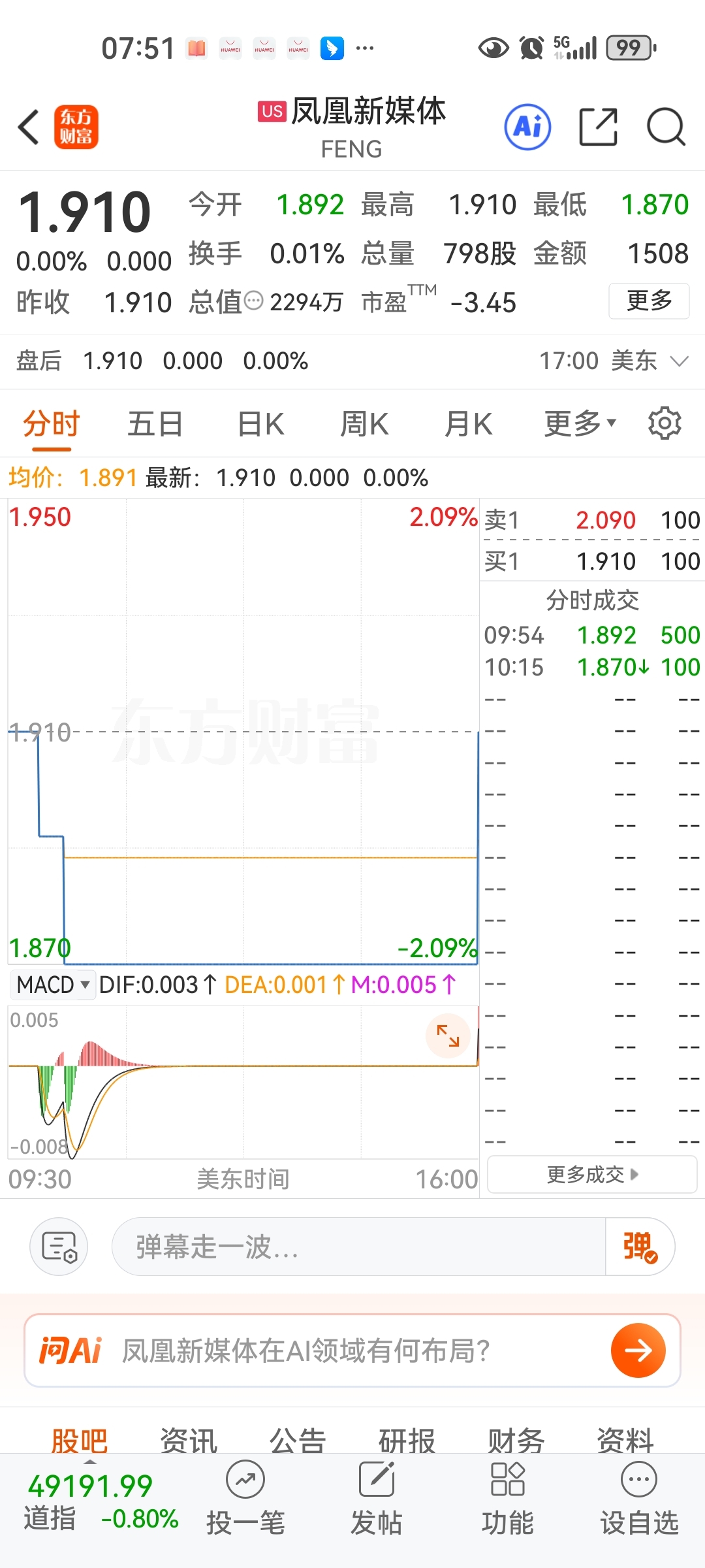 $凤凰新媒体(NYSE|FENG)$ 1月13日,一天总量700多股,失去诚信变成拉几了!