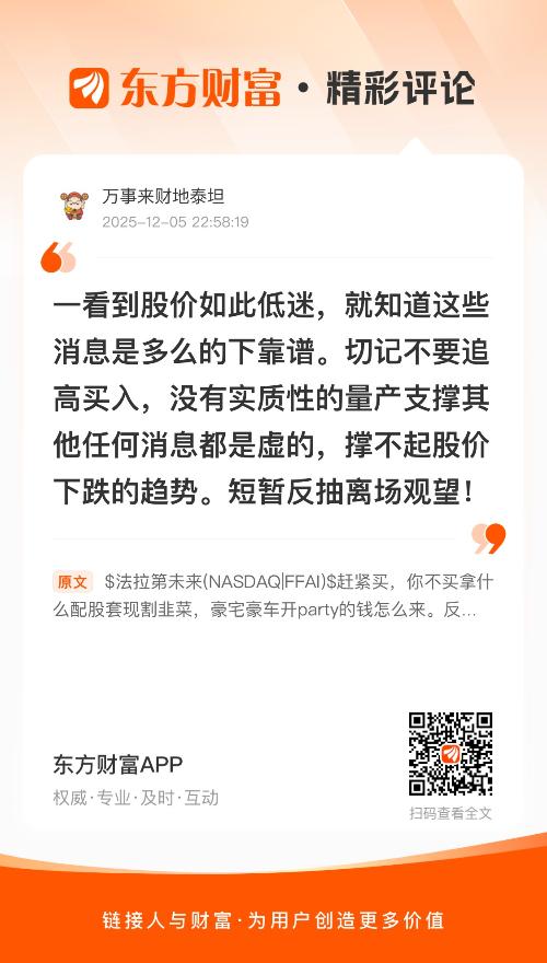 $法拉第未来(NASDAQ|FFAI)$ 赶紧买,你不买拿什么配股套现割韭菜,豪宅豪车开party的钱怎么来。反正车也卖不动没钱,全靠股民捐钱