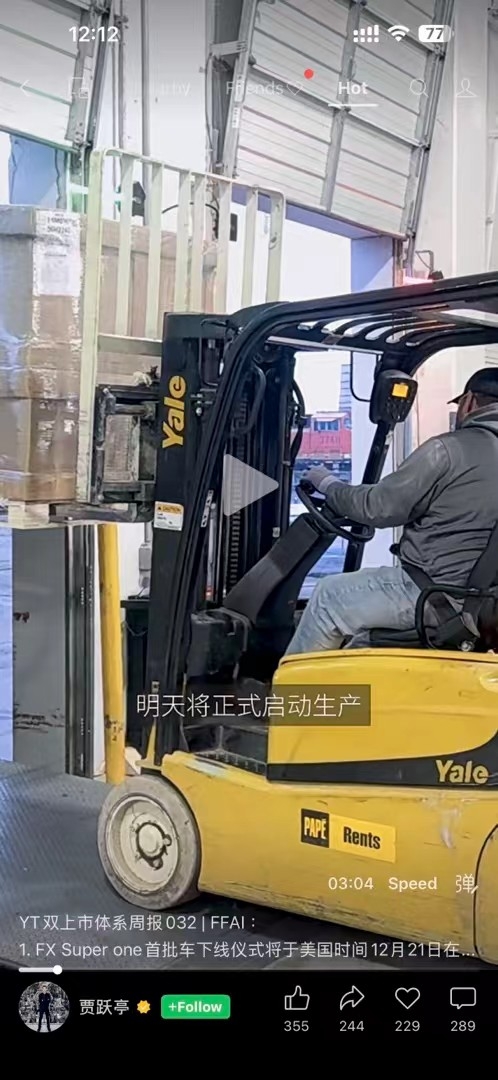 $法拉第未来(NASDAQ|FFAI)$ 新设备到了,马上量产