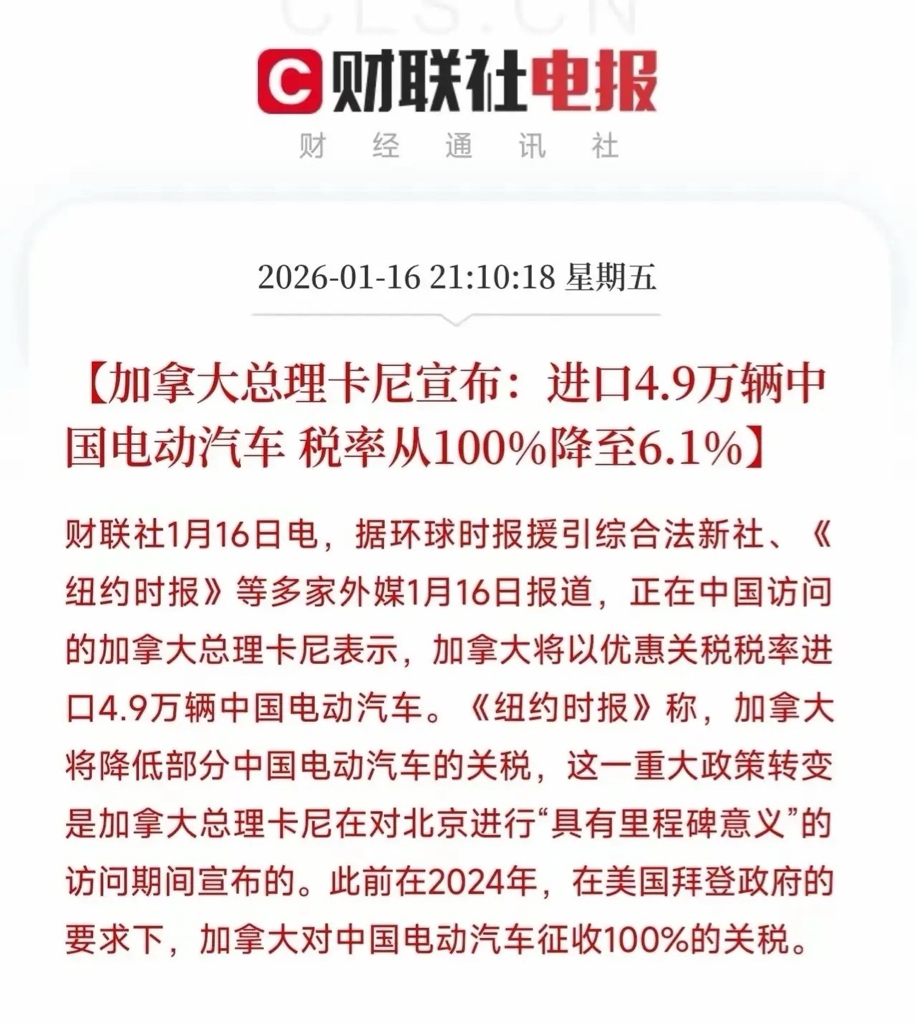 加拿大将中国电动车关税从100%大幅降至6.1%美国人还要买老假手工组装的二手车