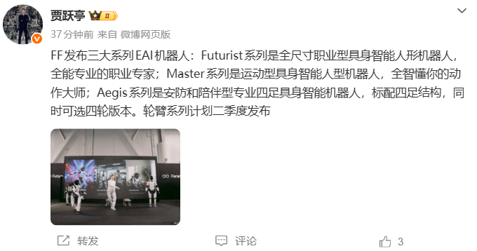 贾跃亭:FF发布3大系列机器人