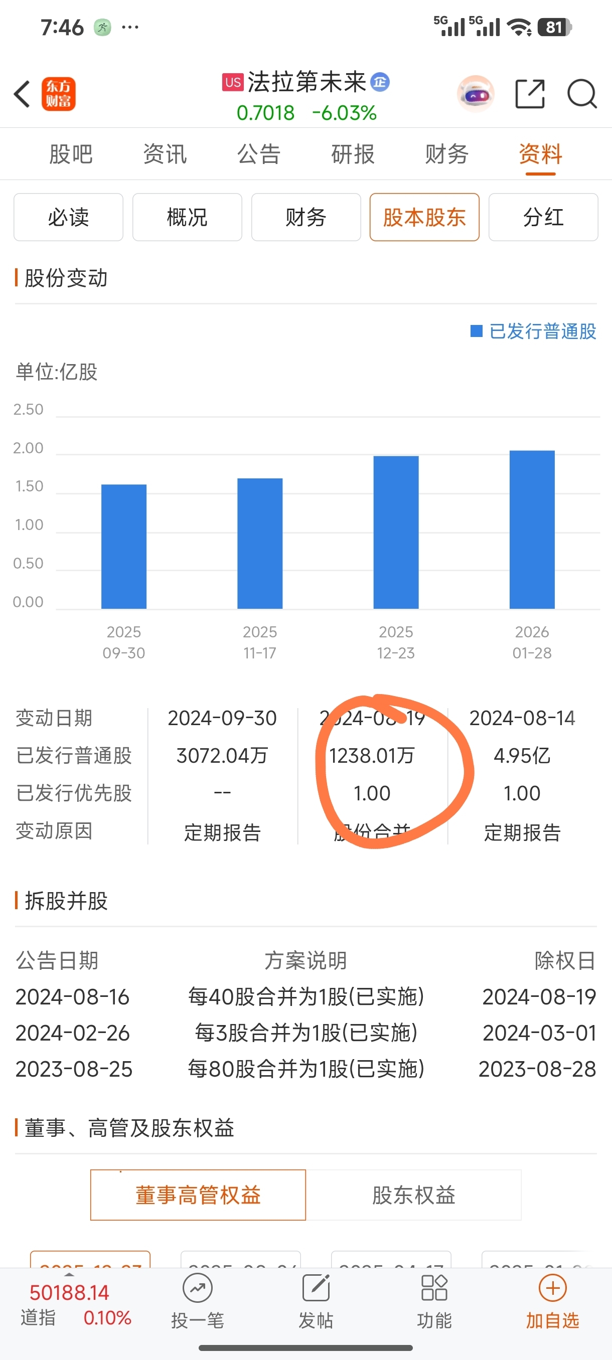$法拉第未来(NASDAQ|FFAI)$ 24年最后一次合股后,股份变成了一千多万,怎么现在又变两亿多了