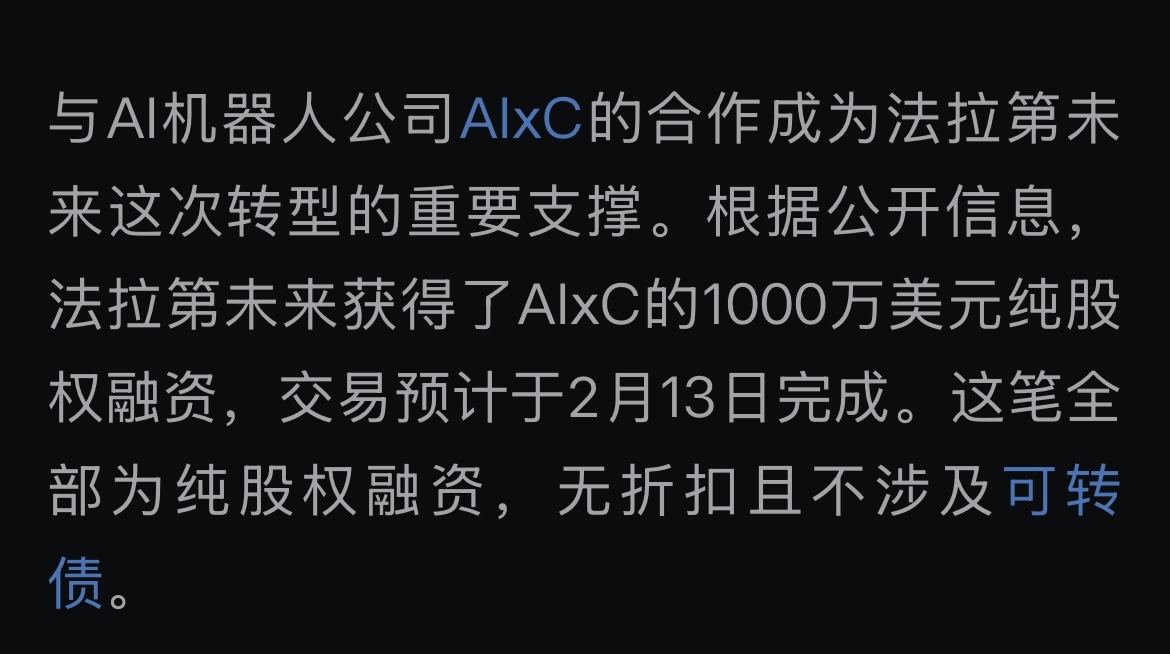 $法拉第未来(NASDAQ|FFAI)$ 昨天增发方案已通过,3月合股再增发,一切收割方案都有条不紊按“计划”执行,自己的Alxc虚拟币公司左手倒右手到给FF转1000万砸盘被你说成是投资,今天Alxc更是摇身一变成了机器人公司,继续骗,没底线的Chu生