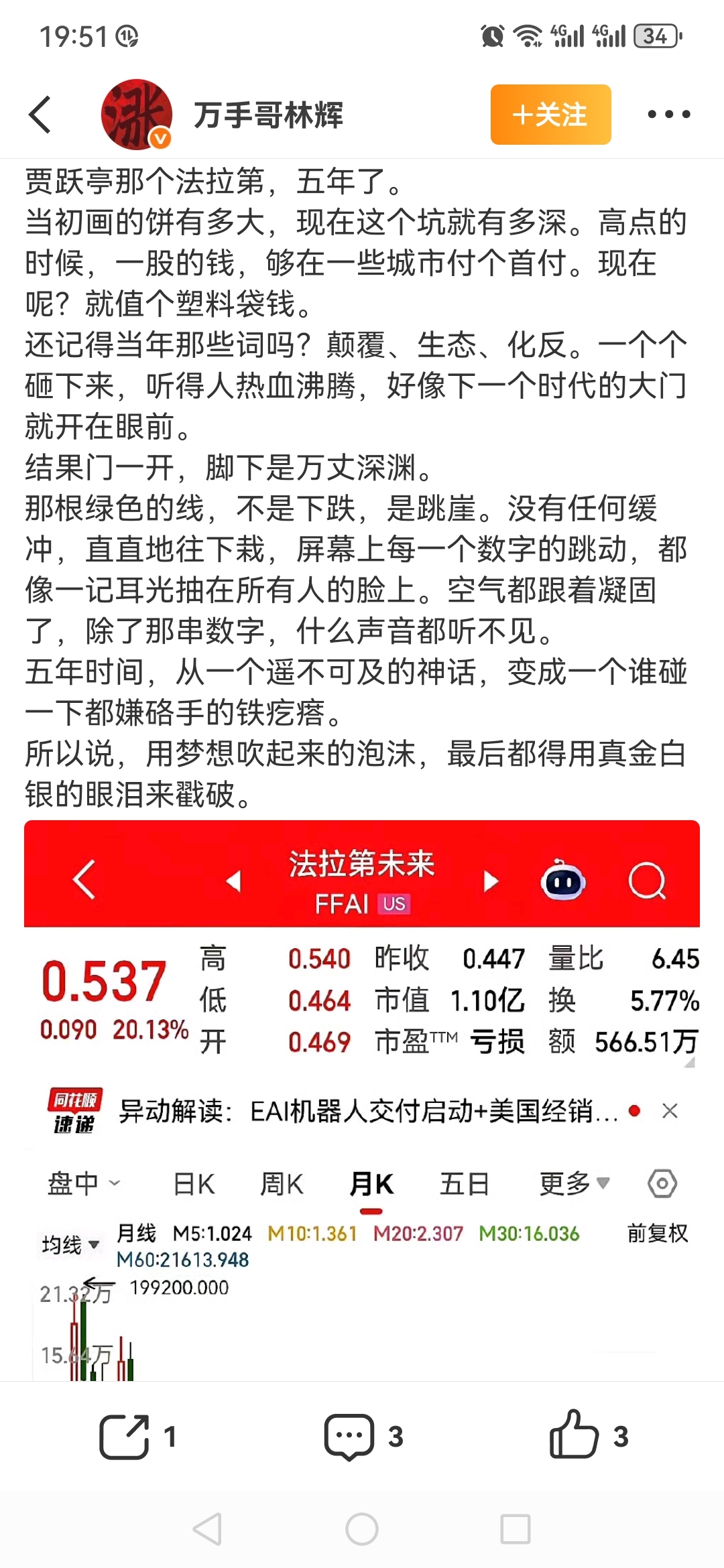 $法拉第未来(NASDAQ|FFAI)$ 合股前,当年可以首付,现在一个塑料袋。