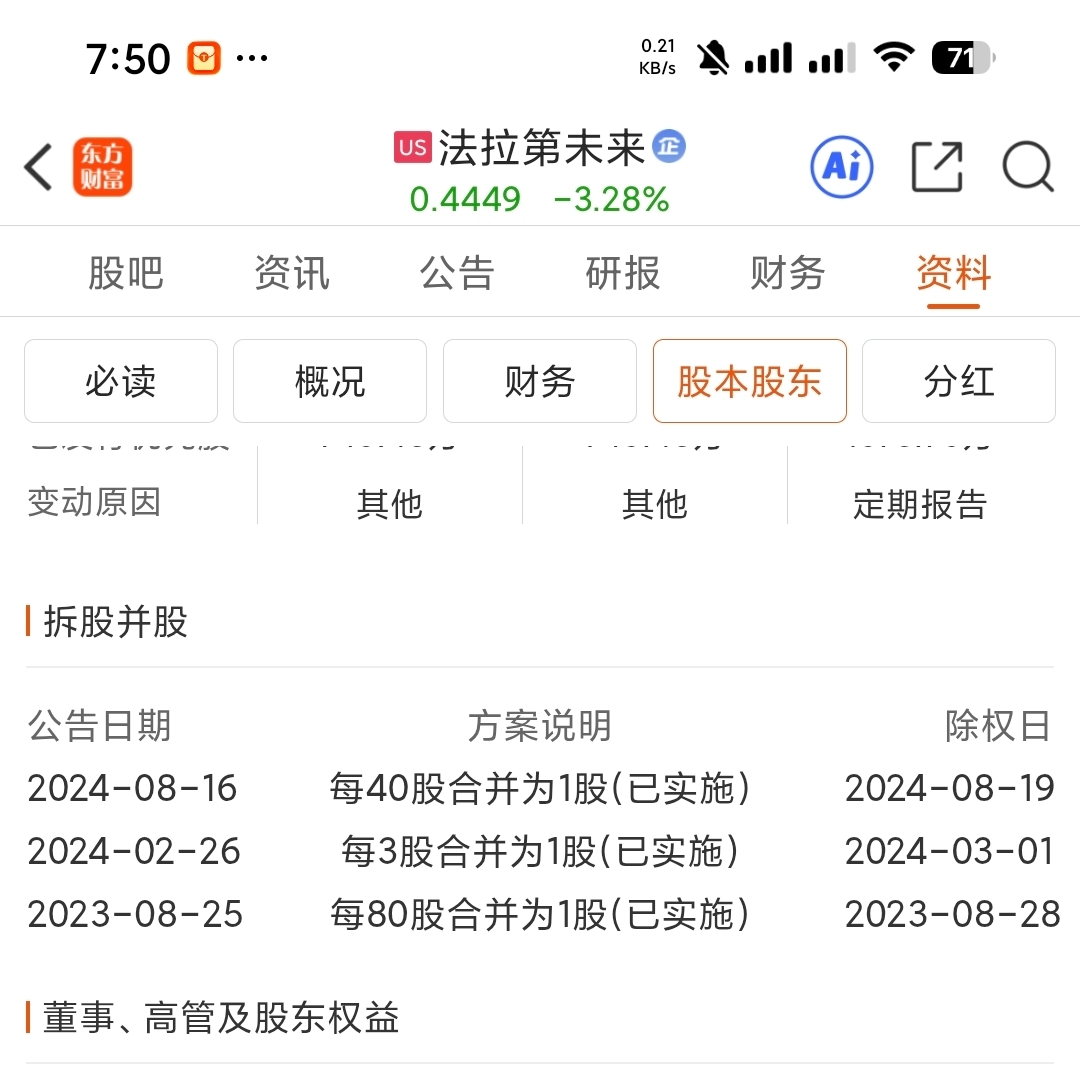 $法拉第未来(NASDAQ|FFAI)$ 退市那是不可能的,合股那是必须的。人家时间都算好了。两年合股指标刚过,又可以合股了!这时间卡的刚刚好。又可以连根拔掉。甲鱼乐开花了。