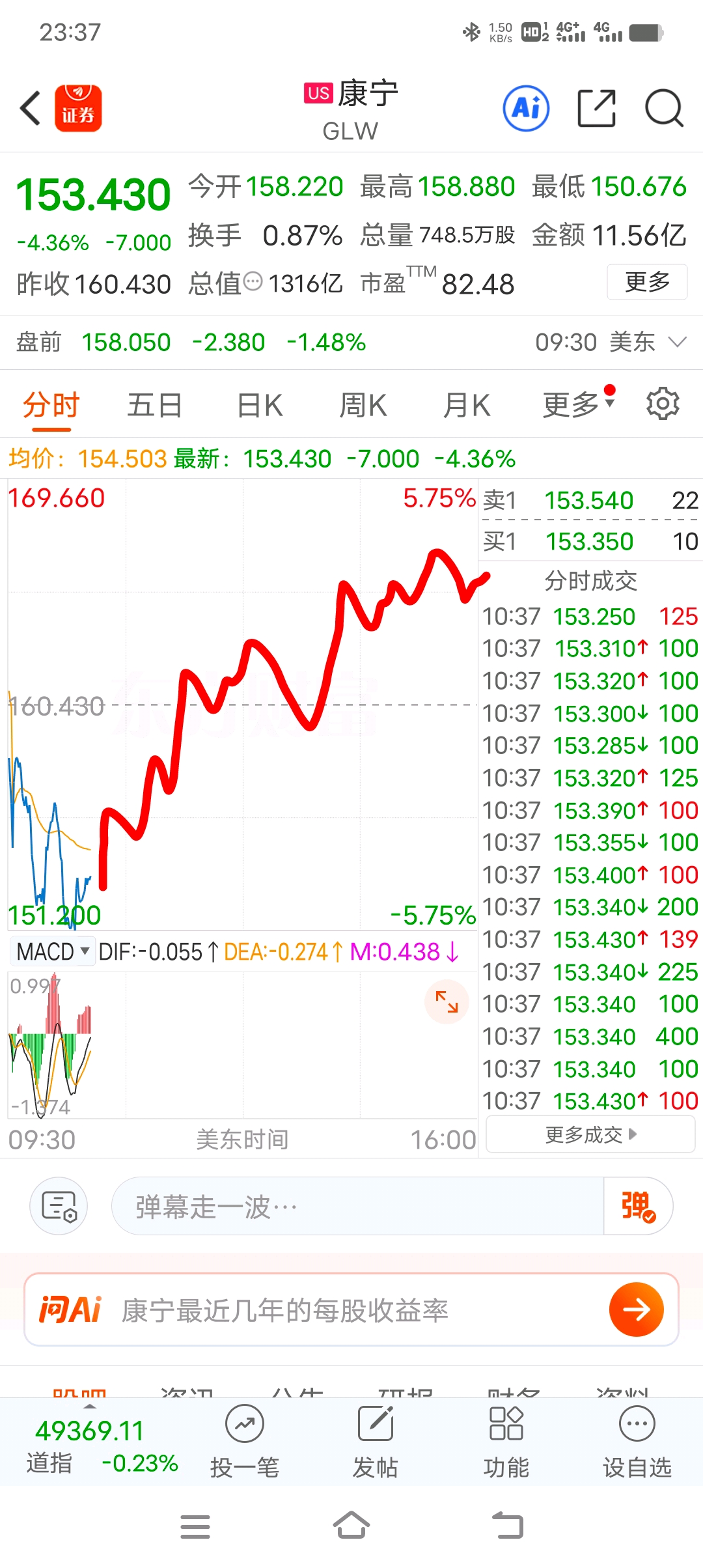 $康宁(NYSE|GLW)$ 安心睡觉,基本这样来