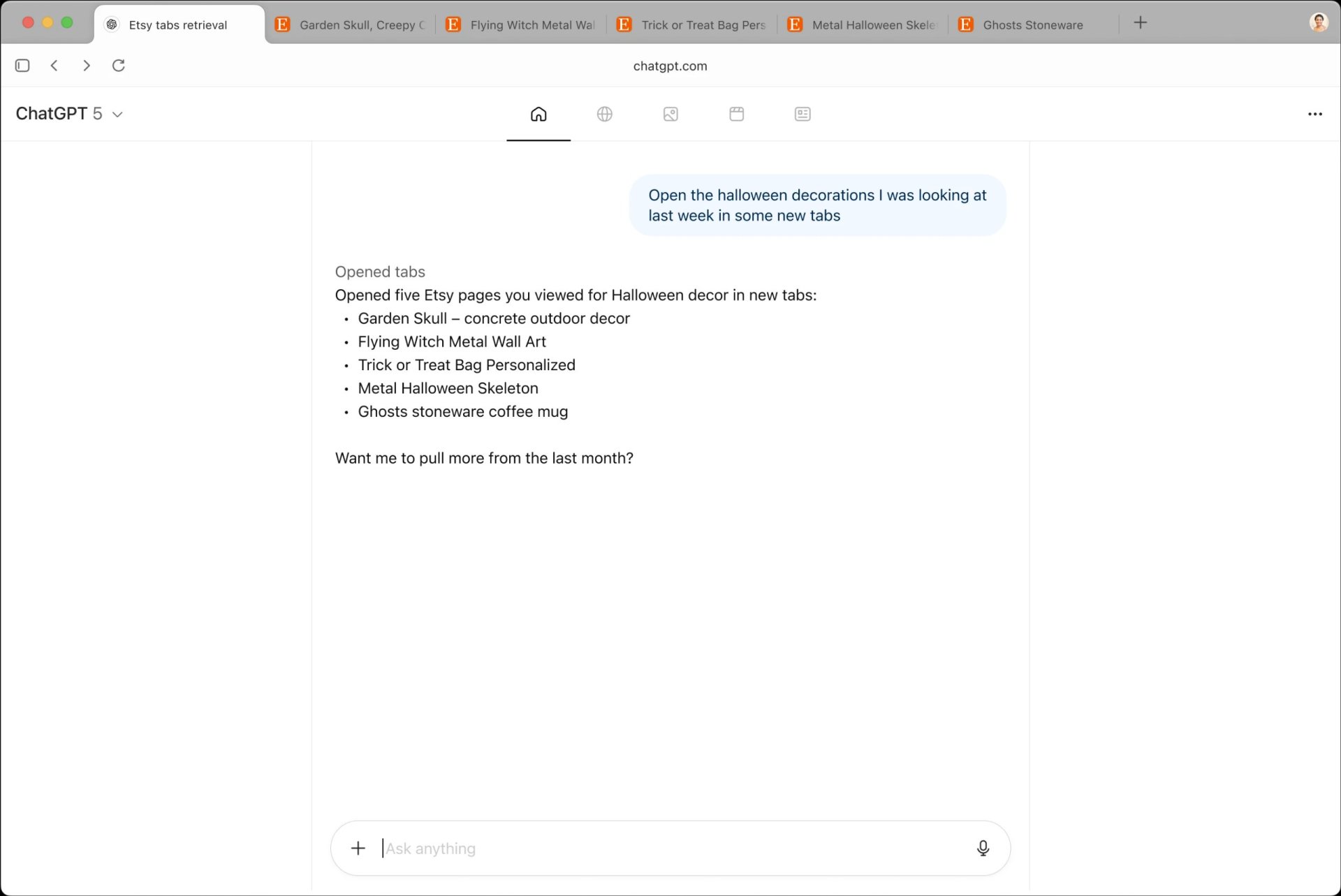 OpenAI产品负责人Adam Fry在直播中表示,ChatGPT Atlas同样配备了这种“sidecar”功能。此外,Atlas还具备“浏览历史”功能,也就是说ChatGPT可以记录用户访问的网站及其操作内容,并据此提供更个性化的回答。