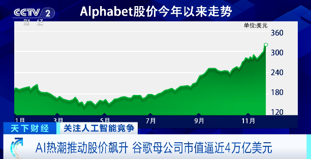 AI热潮推动股价飙升谷歌母公司市值逼近4万亿美元
