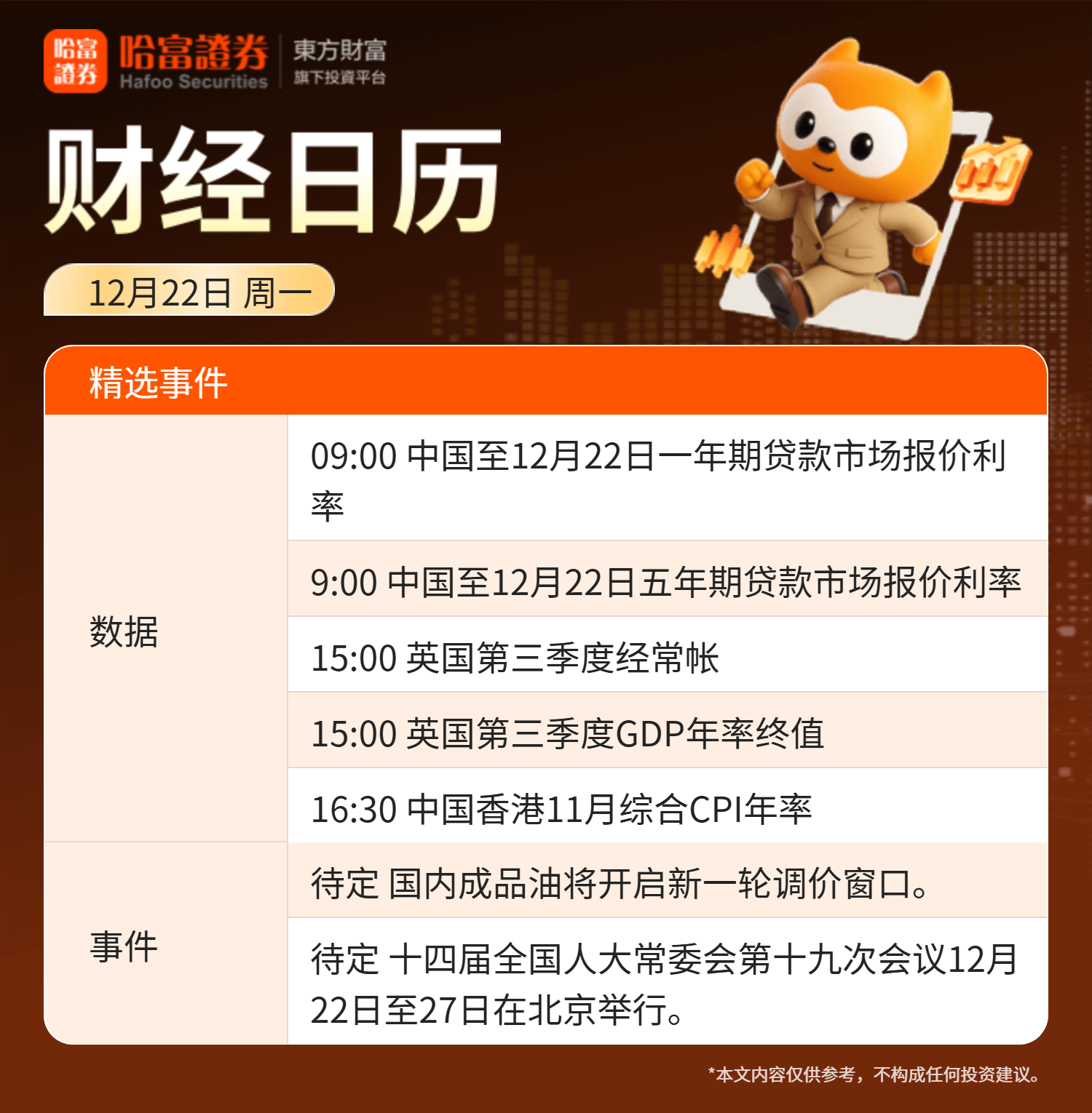 商品:WTI 1月原油期货收涨0.91%,报56.66美元/桶,全周累跌约1.4%;布伦特2月原油期货收涨1.09%,报60.47美元/桶,全周累跌约1.1%。COMEX 2月黄金期货收涨0.52%,报4387.3美元/盎司,全周累涨约1.4%。COMEX 3月白银期货收涨3.48%,报67.489美元/盎司,全周累涨约8.8%。LME期铜收涨约0.9%,报11882美元/吨,全周累涨约3.2%。LME期锡收涨约0.7%,报43227美元/吨,全周累涨约4.6%。