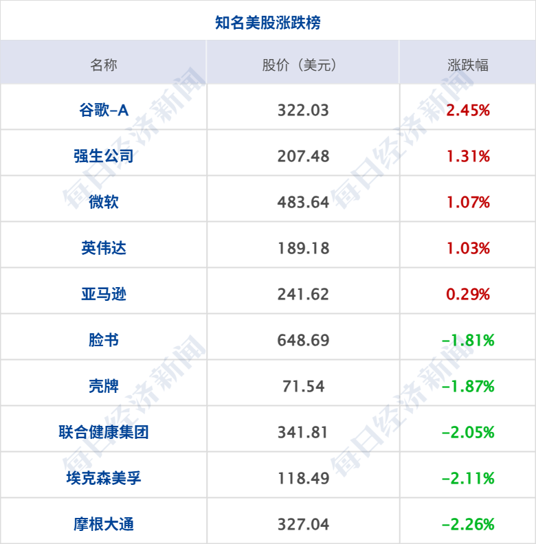 美股三大指数收盘涨跌不一,纳指涨0.16%,标普500指数跌0.34%,道指跌0.94%;大型科技股多数上涨,英特尔涨超6%,谷歌涨逾2%,微软、英伟达涨超1%,亚马逊小幅上涨;Meta跌逾1%,苹果、特斯拉小幅下跌。其中,谷歌市值达到3.89万亿美元,超过苹果公司的3.85万亿美元,为2019年以来首次。中概股多数下跌,纳斯达克中国金龙指数跌1.58%,满帮跌超7%,腾讯音乐跌超5%,贝壳、网易等跌超3%,金山云、阿里巴巴等跌超2%,富途控股、哔哩哔哩等跌超1%;传奇生物涨超8%,百度、蔚来小幅上涨。