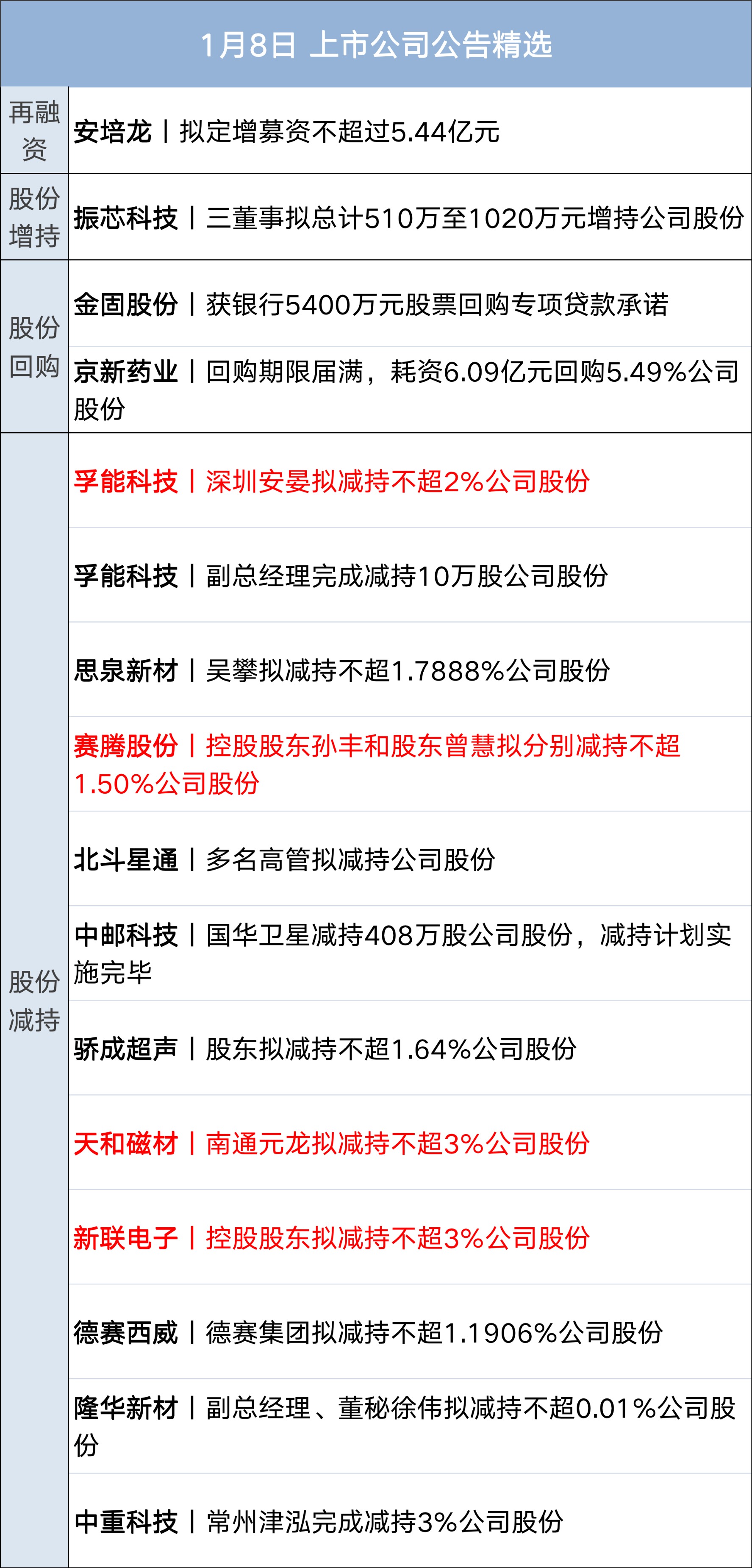 新宏泽(SZ002836,股价15.99元,市值36.84亿元):1月7日,新宏泽公告称,公司副董事长孟学女士对公司未来业务发展和长期前景充满信心,鉴于其已通过“亿泽控股有限公司”间接持有本公司大量股权,认为通过长期持股的方式已能获得足够的回报,为支持公司业务发展,孟学女士自愿放弃领取薪酬。年报显示,孟学1965年出生,2011年至今一直担任公司董事,现任公司副董事长,年薪为107万元。