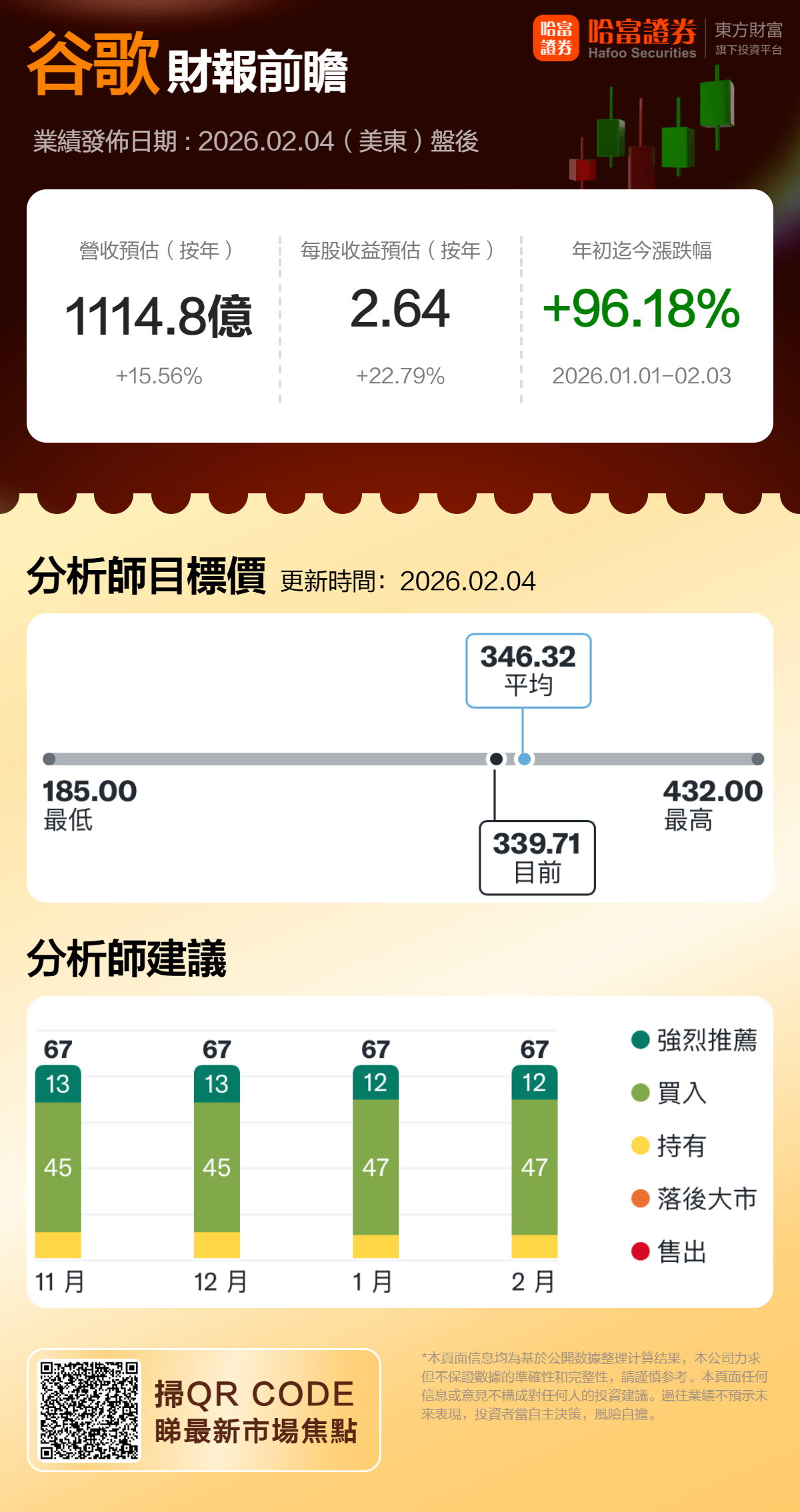 谷歌母公司Alphabet将于2026年2月4日(本周三)美股收盘后发布其第四季度财报,市场普遍预期收入将达1114.8亿美元,同比增长15.56%,每股收益为2.64美元,同比增长22.79%。