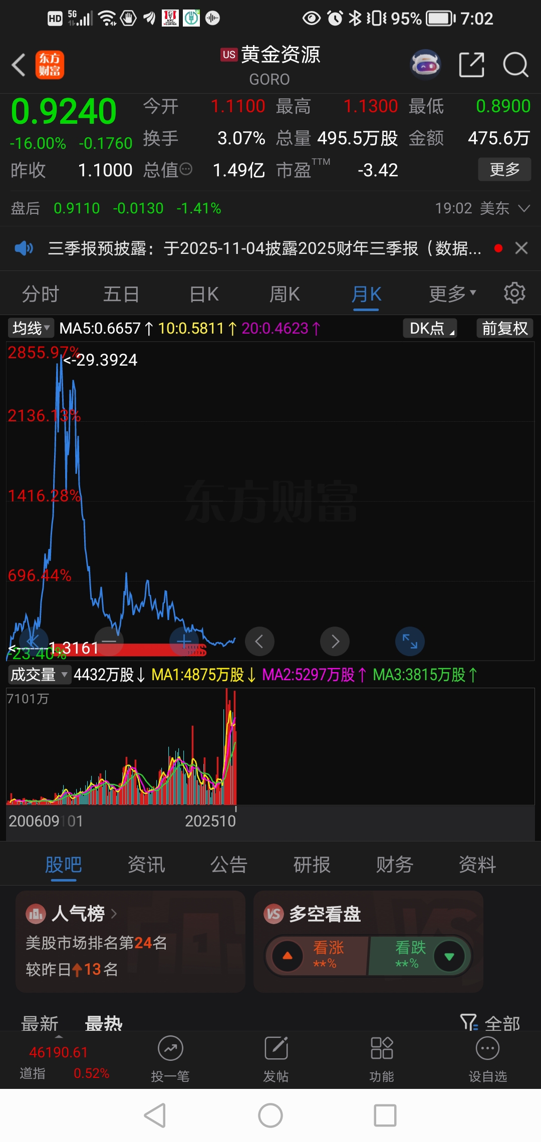 $黄金资源(AMEX|GORO)$ 为什么黄金资源看起来还在底部啊?