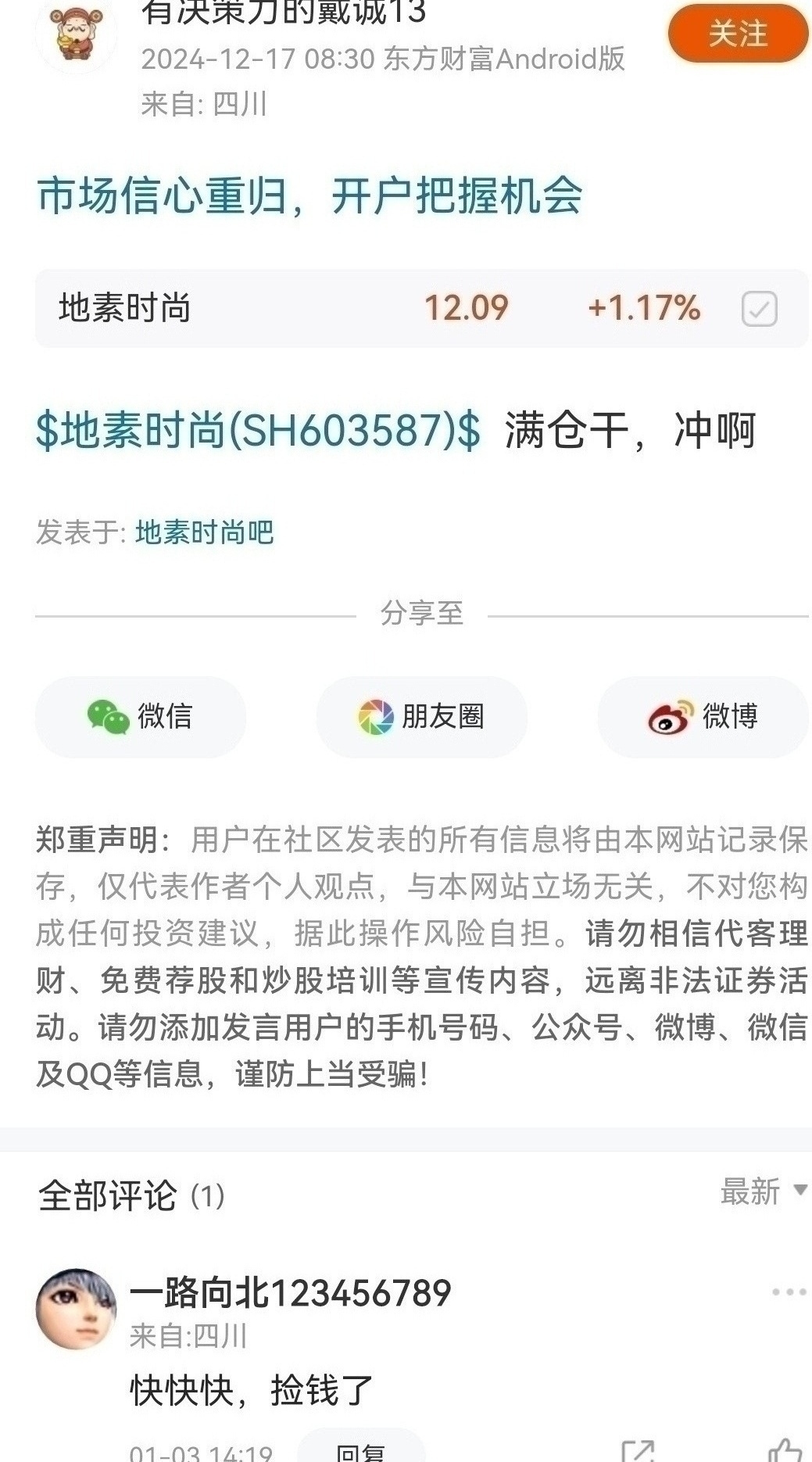 温馨提示: 1.根据《证券法》规定,禁止编造、传播虚假信息或者误导性信息,扰乱证券市场;2.用户在本社区发表的所有资料、言论等仅代表个人观点,与本网站立场无关,不对您构成任何投资建议。用户应基于自己的独立判断,自行决定证券投资并承担相应风险。《东方财富社区管理规定》