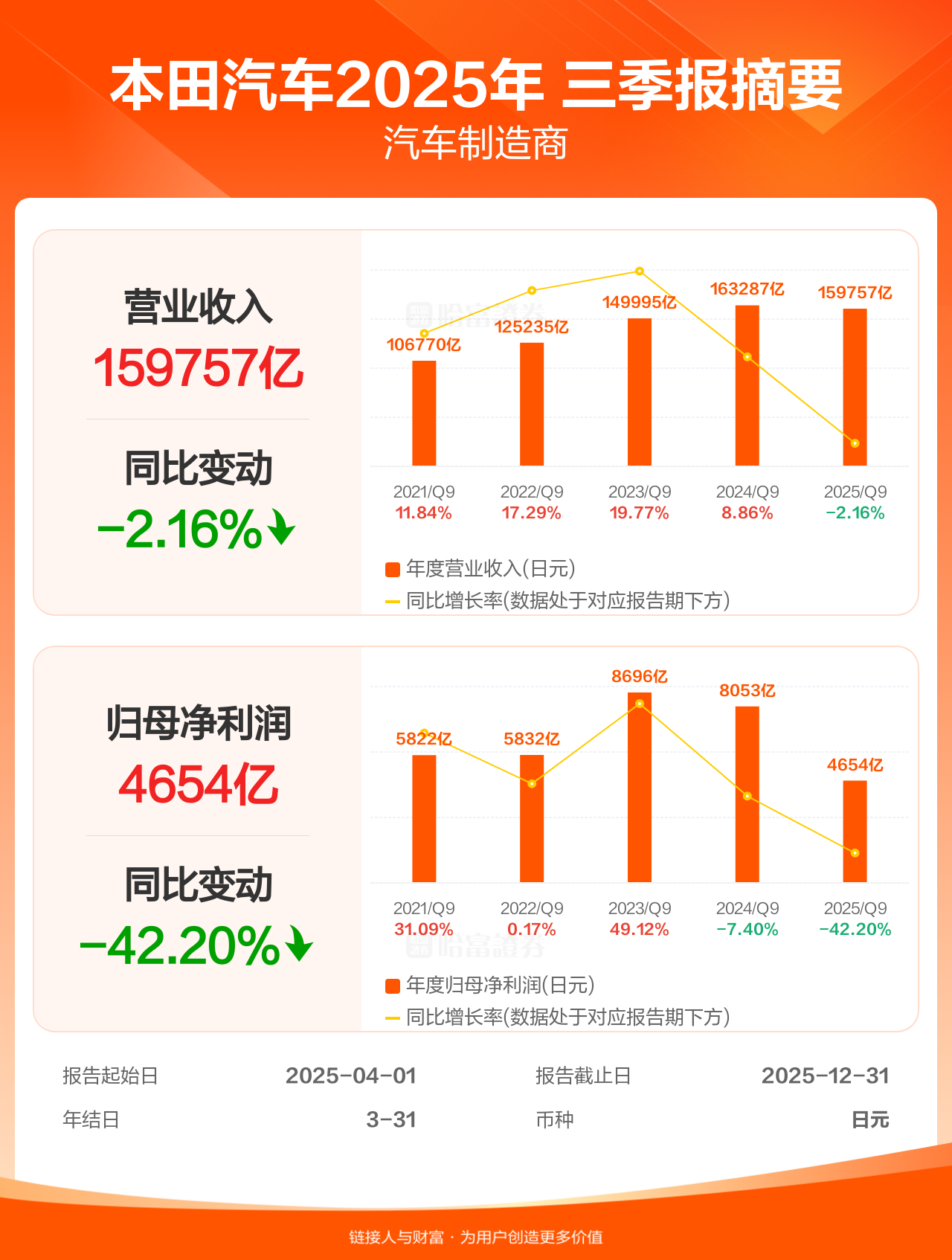 【图解财报】本田汽车三季报盈利4654.37亿日元,同比减少42.20%