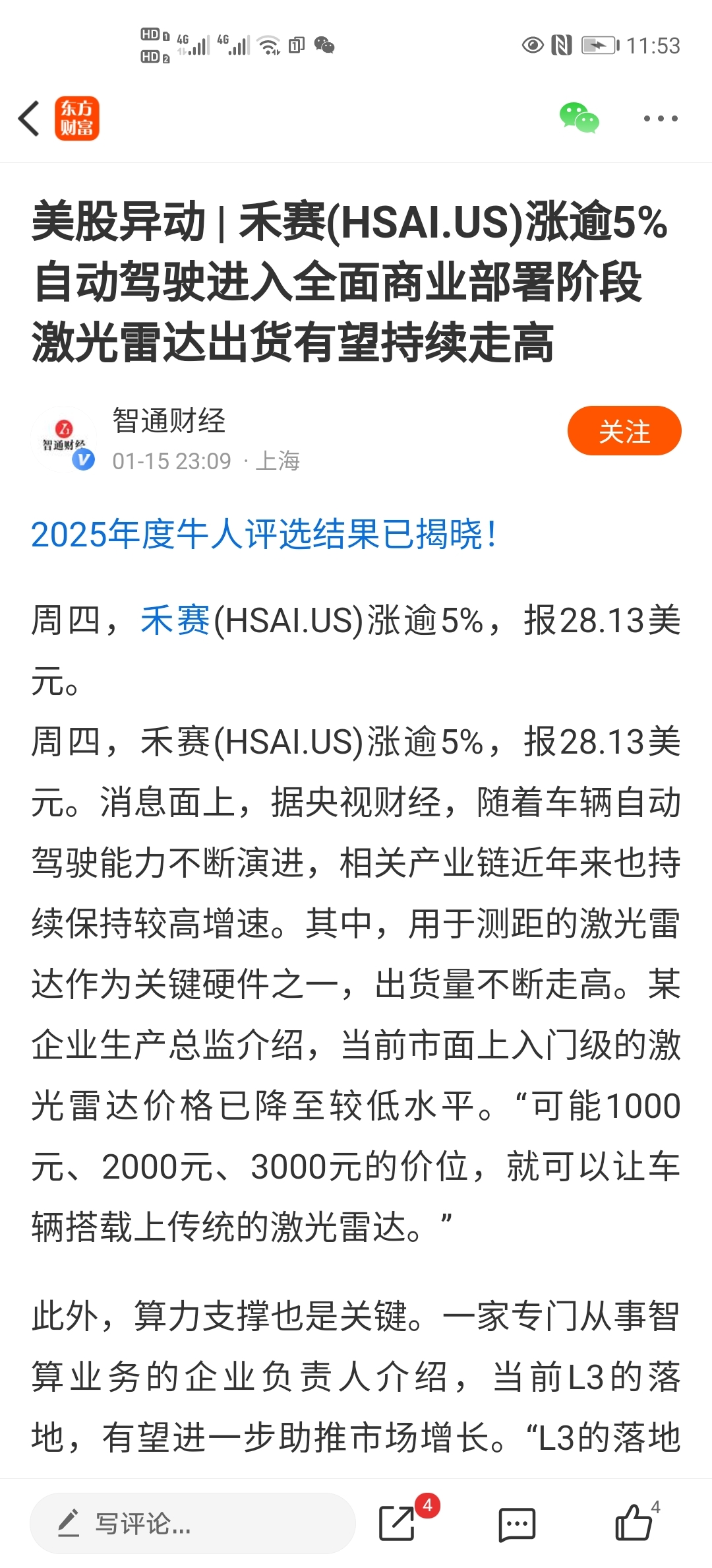 $禾赛(NASDAQ|HSAI)$