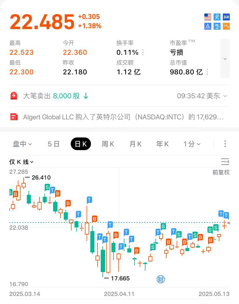 $英特尔(NASDAQ|INTC)$ 人麻了,什么时候能涨啊 做t都烦了。