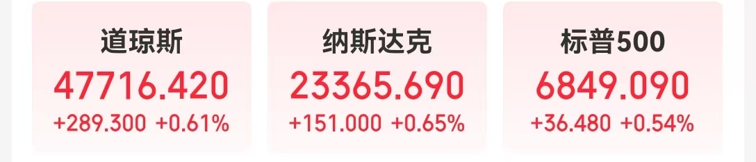 截至当地时间11月28日收盘,美股三大指数集体收涨,纳指涨0.65%;道指上涨289.30点,涨幅0.61%;标普500指数涨0.54%。