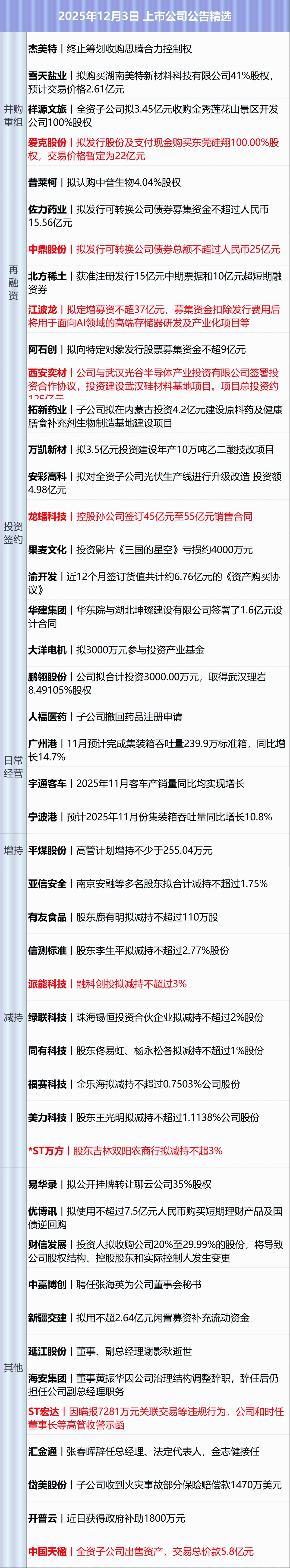 豪威集团(SH603501,股价121.08元,市值1464.35亿元):12月2日晚间,豪威集团公告称,控股股东虞仁荣拟向宁波东方理工大学教育基金会无偿捐赠其持有公司的3000万股无限售条件流通股,占公司目前总股本的2.48%;股东宁波市虞仁荣教育基金会拟向大学基金会无偿捐赠其持有公司的60万股无限售条件流通股,约占公司目前总股本的0.05%。