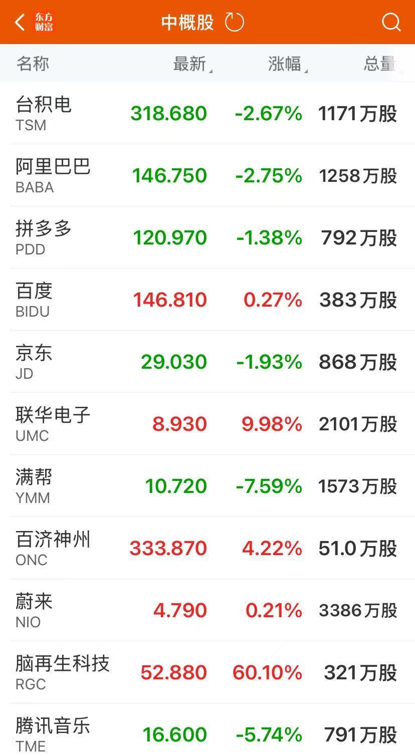 热门中概股多数下跌,纳斯达克中国金龙指数跌1.58%。满帮跌超7%,腾讯音乐跌超5%,贝壳、网易等跌超3%,金山云、阿里巴巴等跌超2%,富途控股、哔哩哔哩等跌超1%。