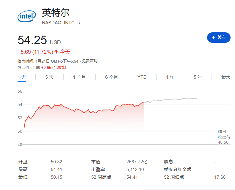 在备受关注的季度财报发布前夕,英特尔股价周三收盘飙升逾11%,一举突破2022年1月以来的最高点。这一强劲走势推动公司市值自2022年以来首次突破2500亿美元大关。继去年录得84%的涨幅后,该股在2026年开年至今已上涨约35%,过去12个月的累计涨幅更是达到了149%。